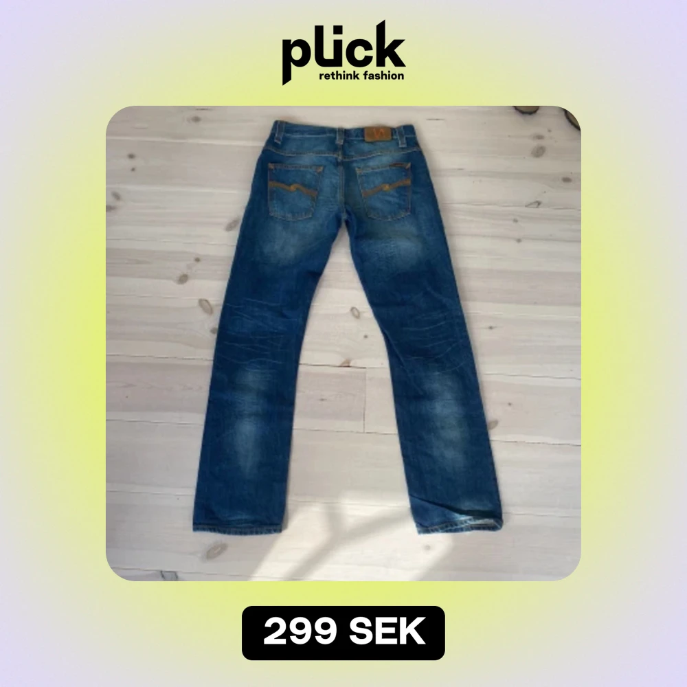 Blåa Nudie jeans med en riktigt skön vintage fade storleken 30/32. Vet inte modellen på jeansen men sitter slim, typ som grim tim men möjligtvis anningen vidare. Riktigt bra skick!