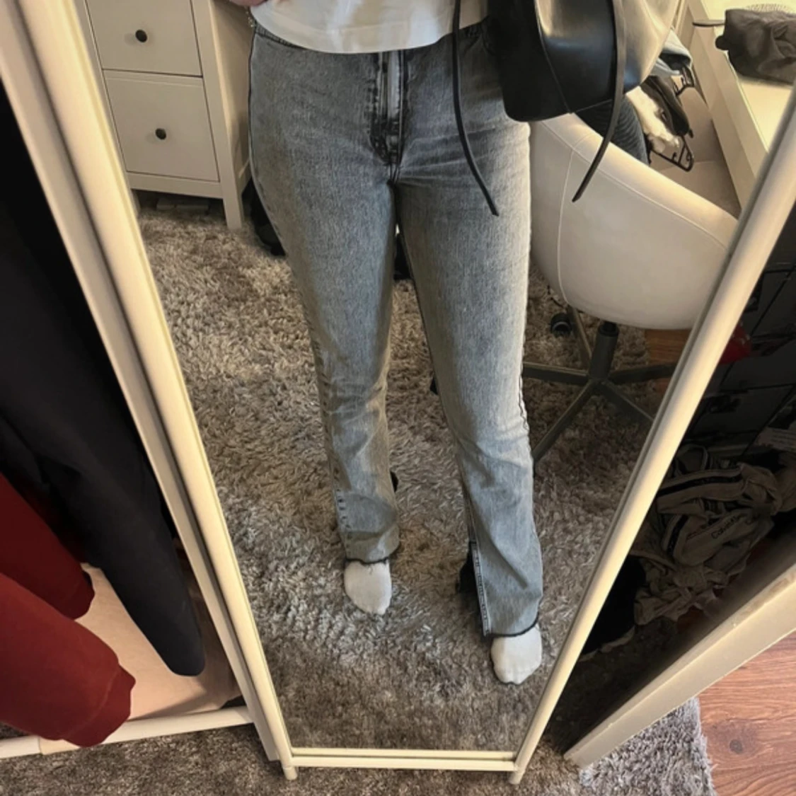Snygga grå jeans med bootcut passform och hög midja🫶🏼