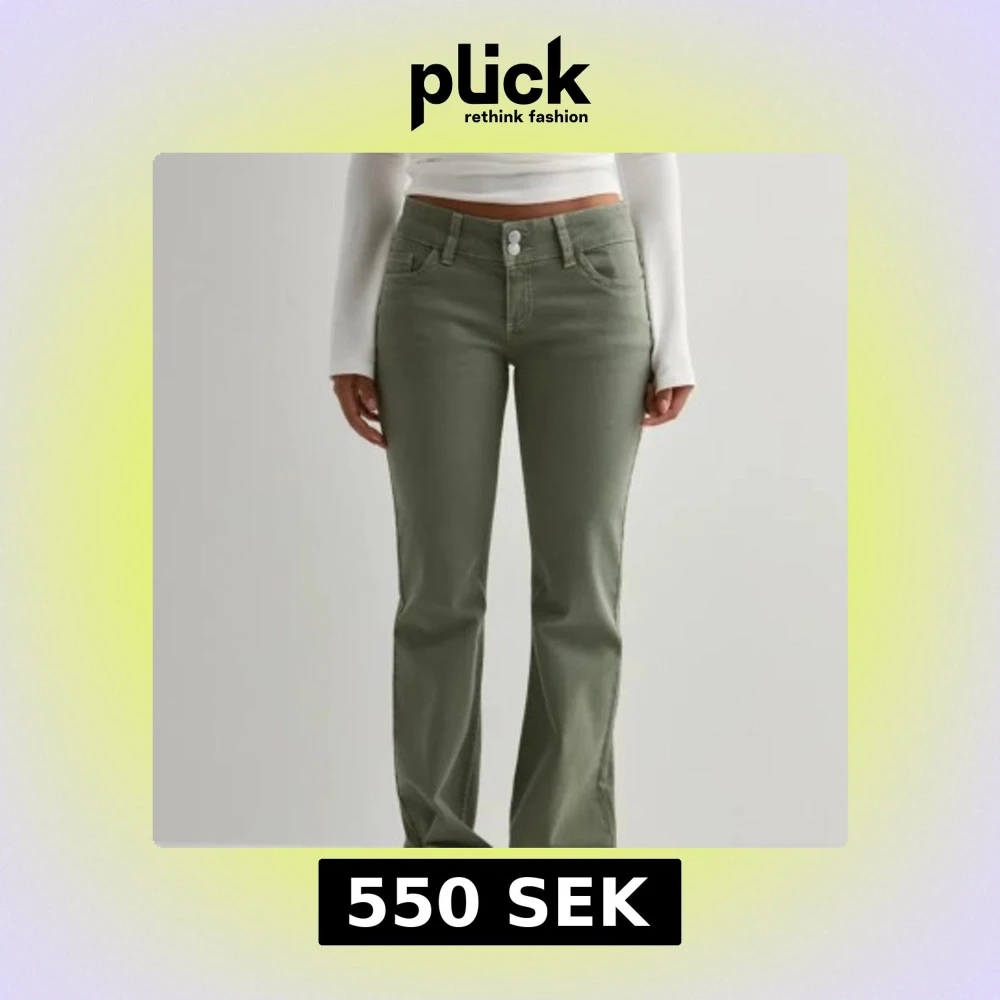 Snygga olivgröna bootcut byxor med klassisk femficksdesign och dekorativa sömmar på bakfickorna. Byxorna har normal passform och stängs med dubbla knappar framtill. Perfekta för dig som vill ha en stilren och trendig look.