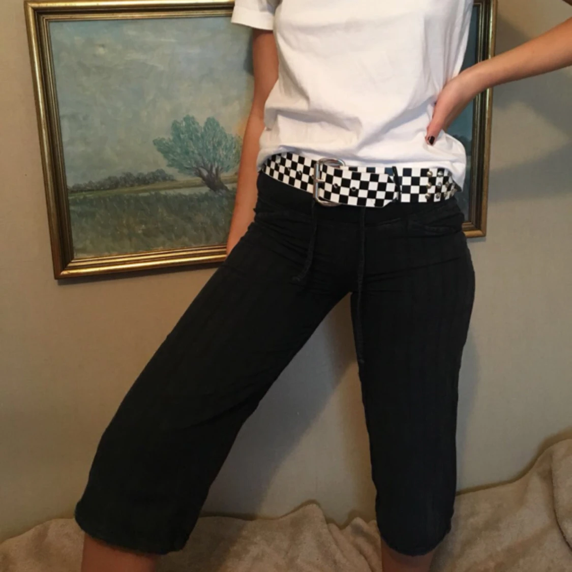 Trekvartsbyxor från Only 90-tal. Randiga i tyget, utan fickor. Lite tajta på mig då jag är 36a. Frakt tillkommer