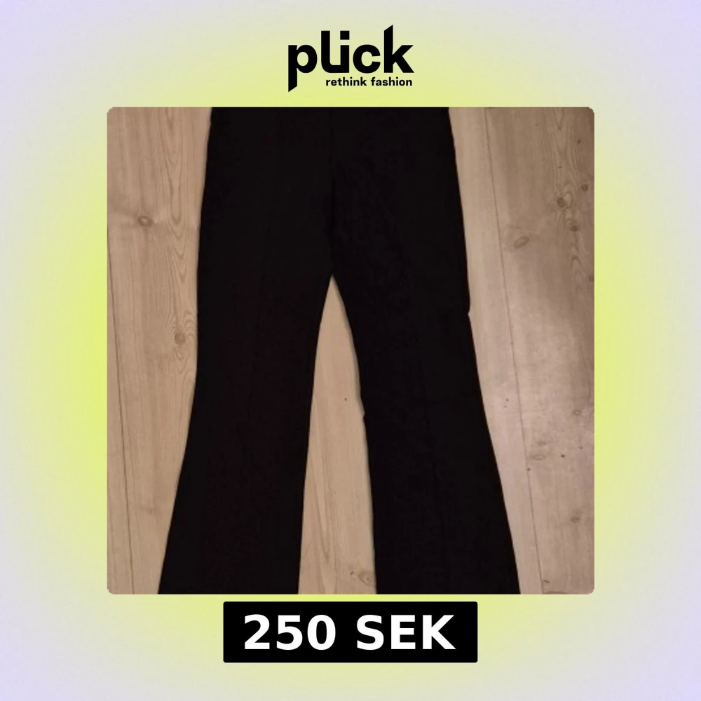 Nya kostymbyxor med prislapp. Tyvärr för små för mig. Stretchigt tyg med viss struktur. 57% Ecovero viskos, 37% polyamid, 6% elastan. Nypris 690 kr