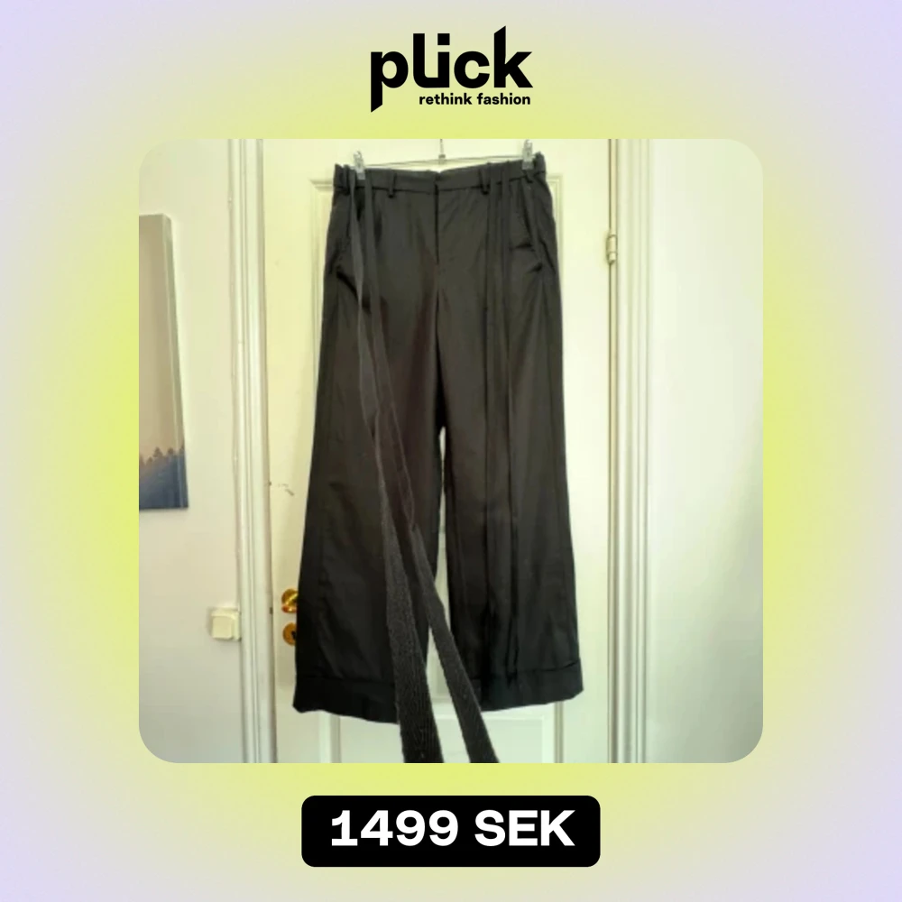Oanvända byxor från legendariska Ann De Mulemeester köpta från deras SS22 kollektion. De är straightlegged med lite utsvängda ben mot botten och sitter som modellbilderna inkluderade i annonsen. Använda två gånger. Storlek L