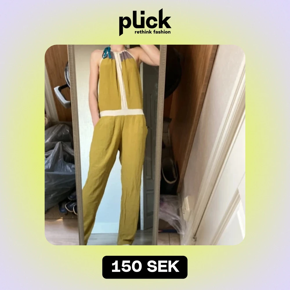 så fin grön gul/jumpsuit med fina detaljer och andra fina färger! Blåa snören som man kan hitta vi sidan av halsen⭐️ Jätteskönt material och verkligen perfekt att ha nu när det börjar bli varmare⭐️ Nyttskick!