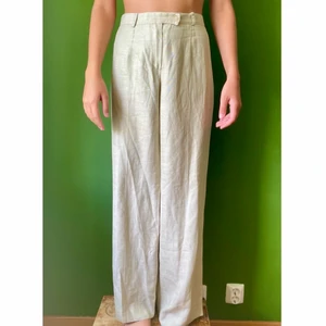 Beiga långa högmidjade byxor. I väldigt fint skick förutom liten öppning i sömmen (syns på sista bilden).