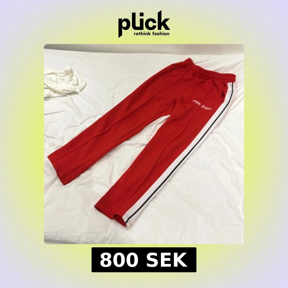 Säljer nu dessa röda Palm Angels byxor då dom inte kommer till så mycket användning längre. Riktigt fräscha inga defekter.. Skriv gärna för fler bilder eller om du har några funderingar!😊
