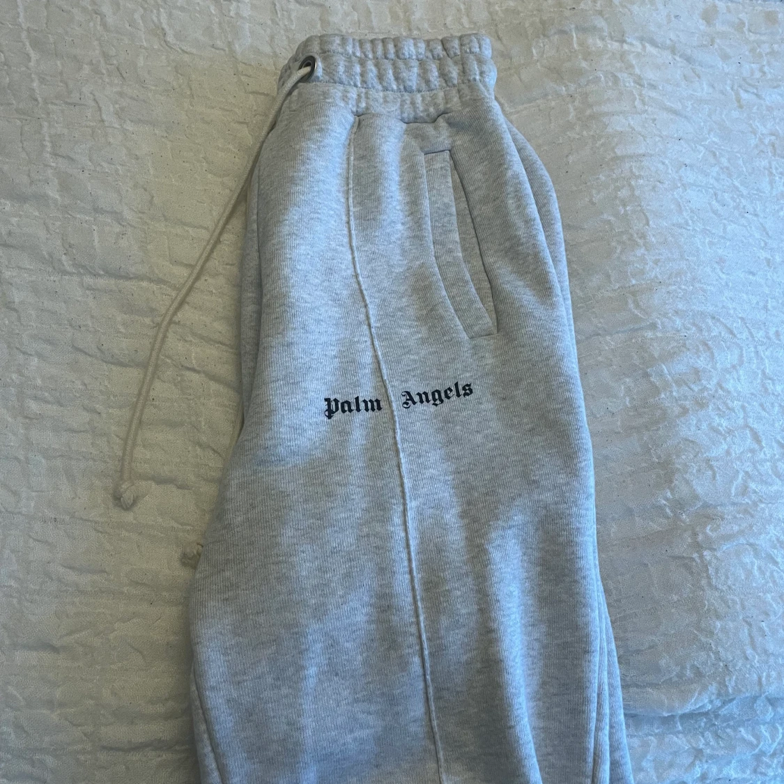 Säljer mina Palm angels mjukis byxor då dom inte kommer till användning. Använda hemma Max 5 gånger. Storlek S Pm för fler bilder