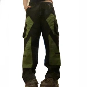 Ett par coola svarta å gröna cargo liknande byxor, väldigt bekväma och slappa 😸 Bara använda 2 ggr eftersom de är lite fel storlek för mig :<
