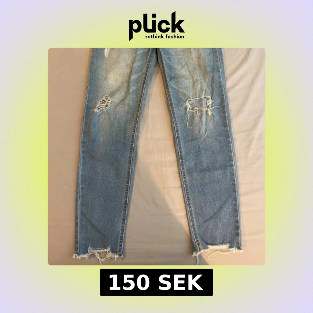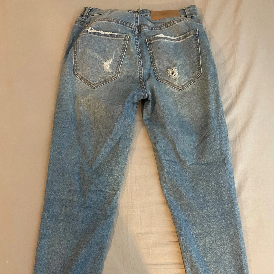 Snygga blå jeans från Pull&Bear med slitningar och hål på både fram- och baksida. Jeansen har normal passform.