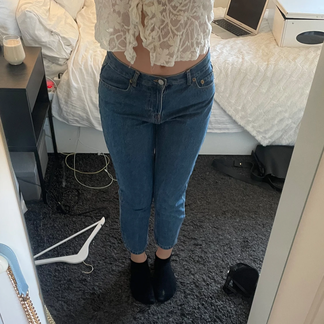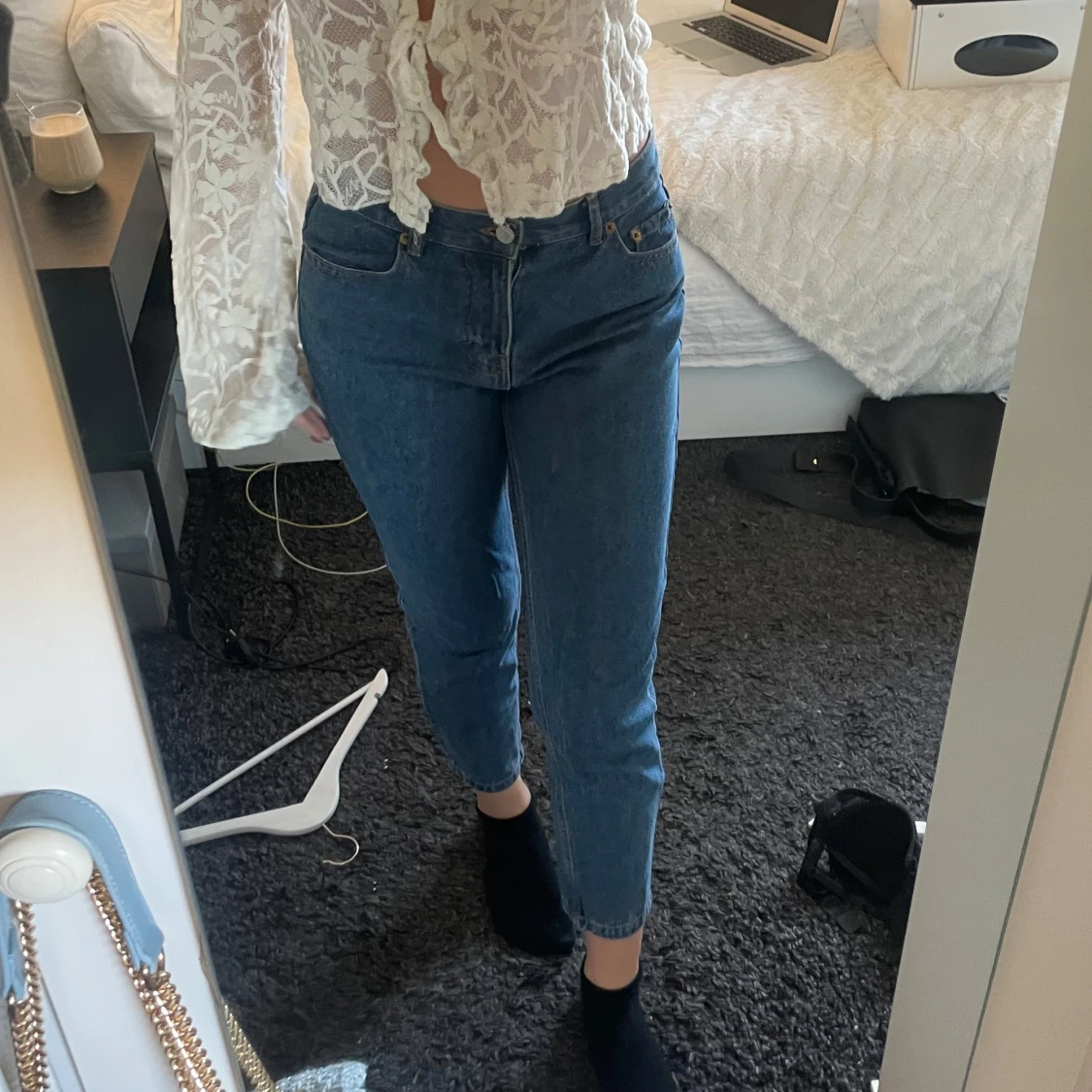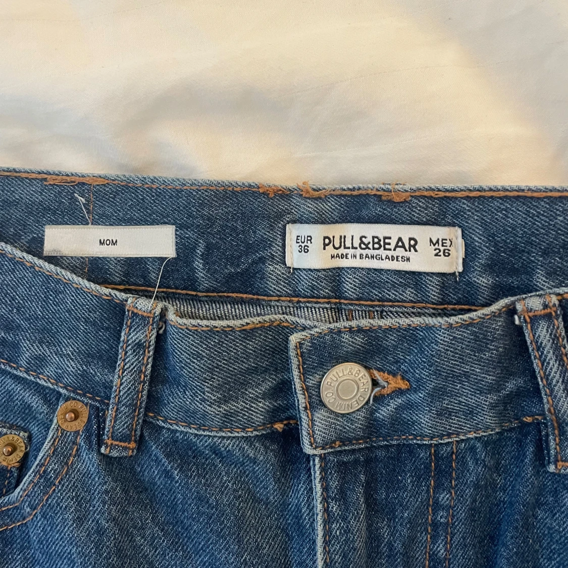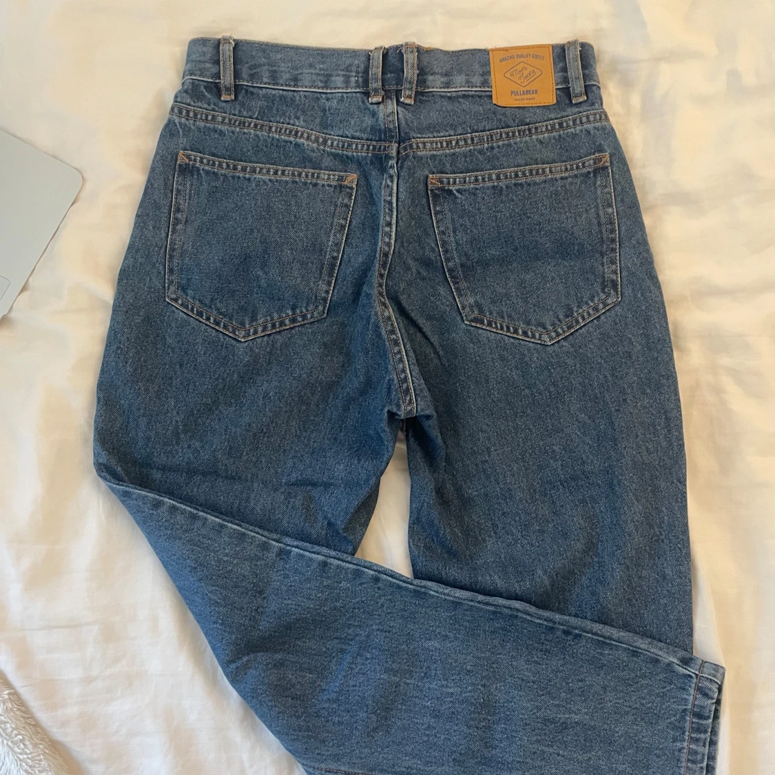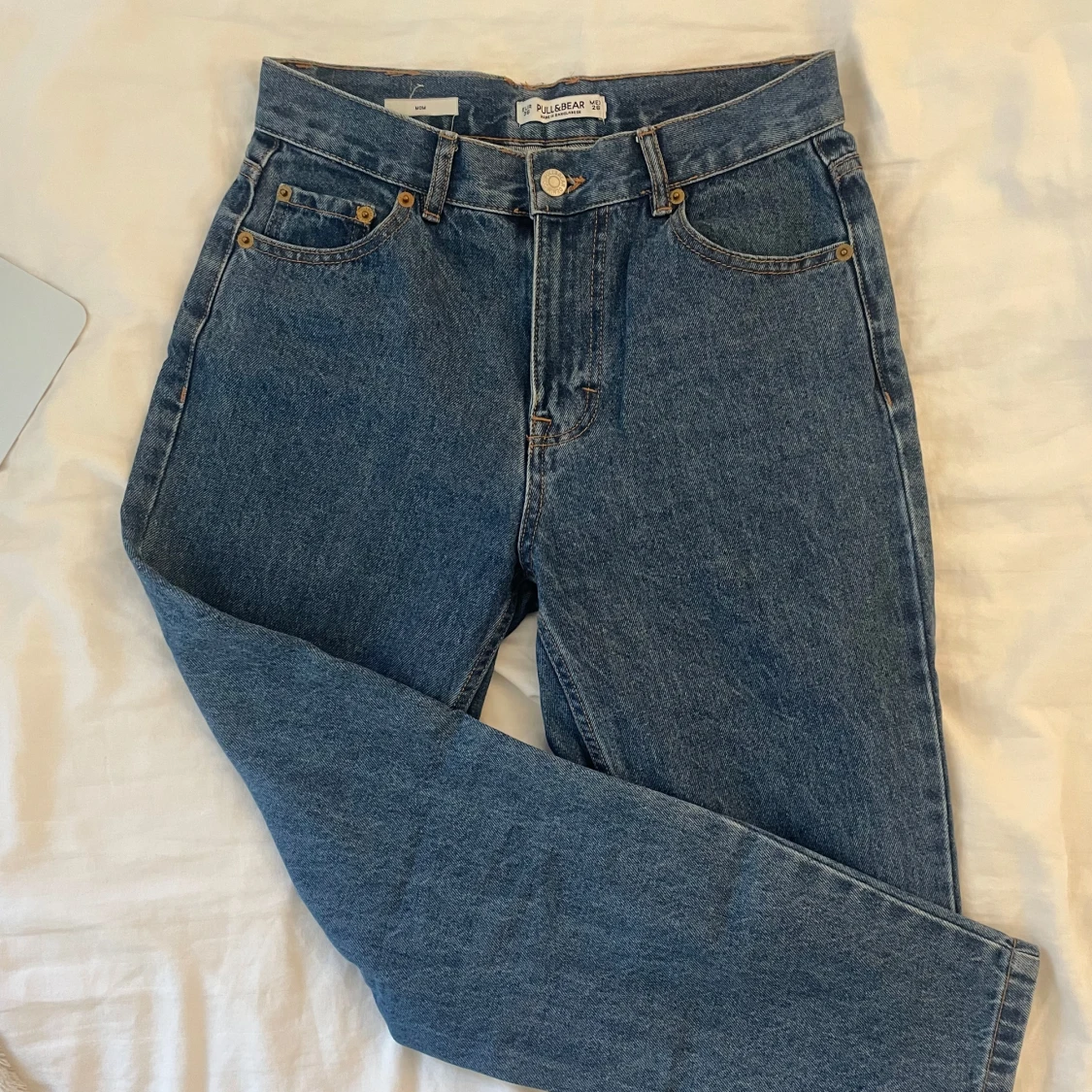 Snygga blå jeans från Pull&Bear i mom fit. De har en medium midja och en rak passform.
