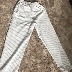 Vita kostymbyxor med ränder med resor i midjan, fejkfickor baktill. Lite små i storleken