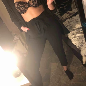 Ett par jättefina högmidjade kostymbyxor med knyt i midjan. Köpta från pull&bear för ca 399kr och de har ej används mer än en gång!! Super kvalité, storlek M men passar på mig som brukar ha 36🥰