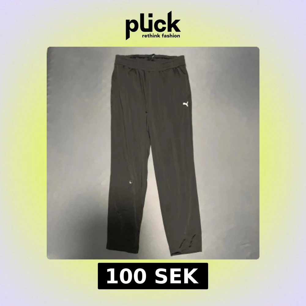 Svarta träningsbyxor från Puma med elastisk midja och diskret logga på vänster lår. Byxorna har en rak passform och är gjorda i ett lätt syntetmaterial som andas bra. Perfekta för gymmet eller sportaktiviteter.