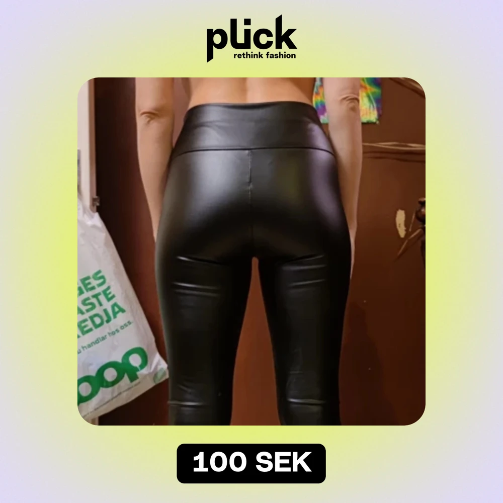 Snygga, helt nya lackleggings med tunt fleecefoder, perfekta för kyliga dagar, varma och sköna. Stl.M men skulle säga de är mer som S. (Jag på bilden har midjemått 69-70cm och höftmått 92 cm)
