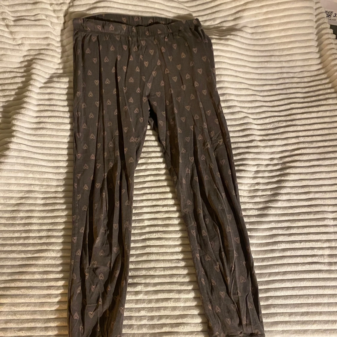 välanvända men fina pyjamasbyxor i strl 170 - passar även xs / s 💕 bruns isch i färgen med rosa hjärtan. resår i midja & mudd i benslut