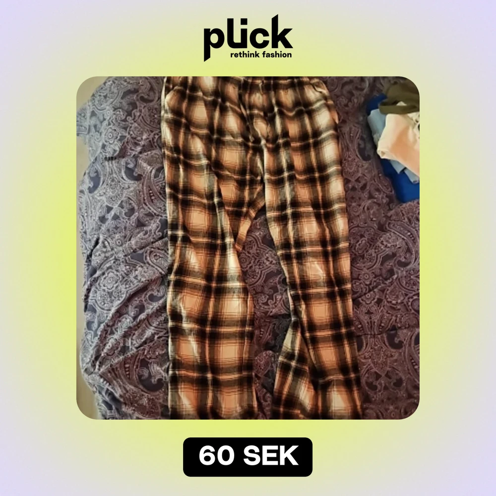 Bruna pyjamasbyxor. Ganska hårt i materialet men sköna efter en stund när man haft dom på sig ett tag