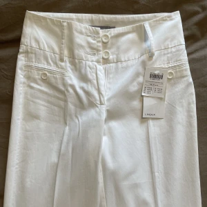 vita kostymbyxor från Lindex, lapp kvar. innerbenslängd 80cm, midjemått 68cm. kan inte ta bilder på för att de är för små på mig