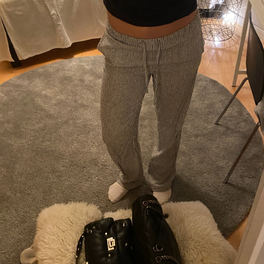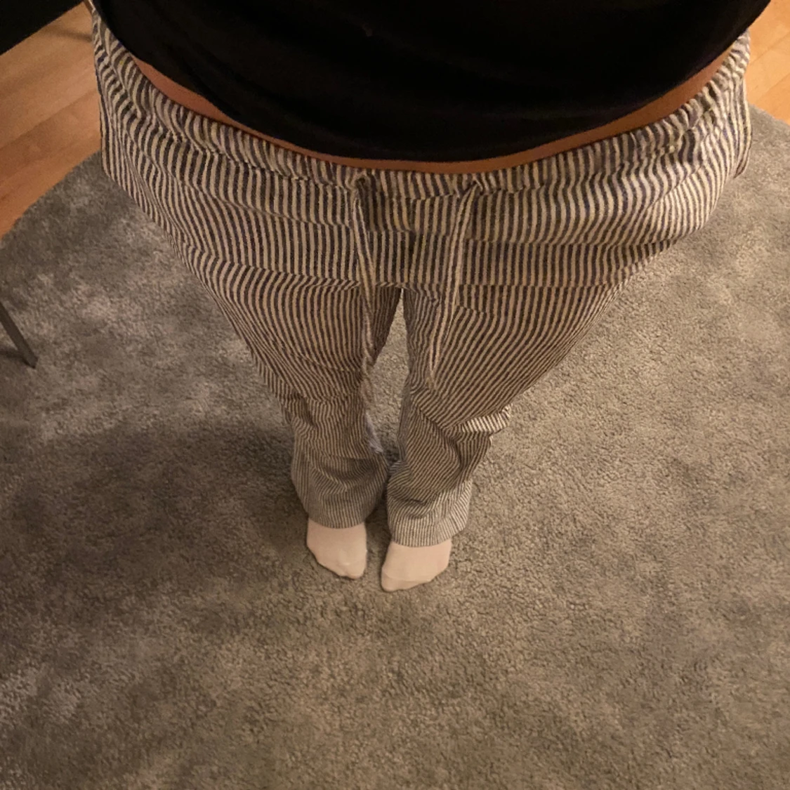 säljer ett par skitsnygga randiga bomullsbyxor som ser ut som linnebyxor! ränderna är grå/blåa