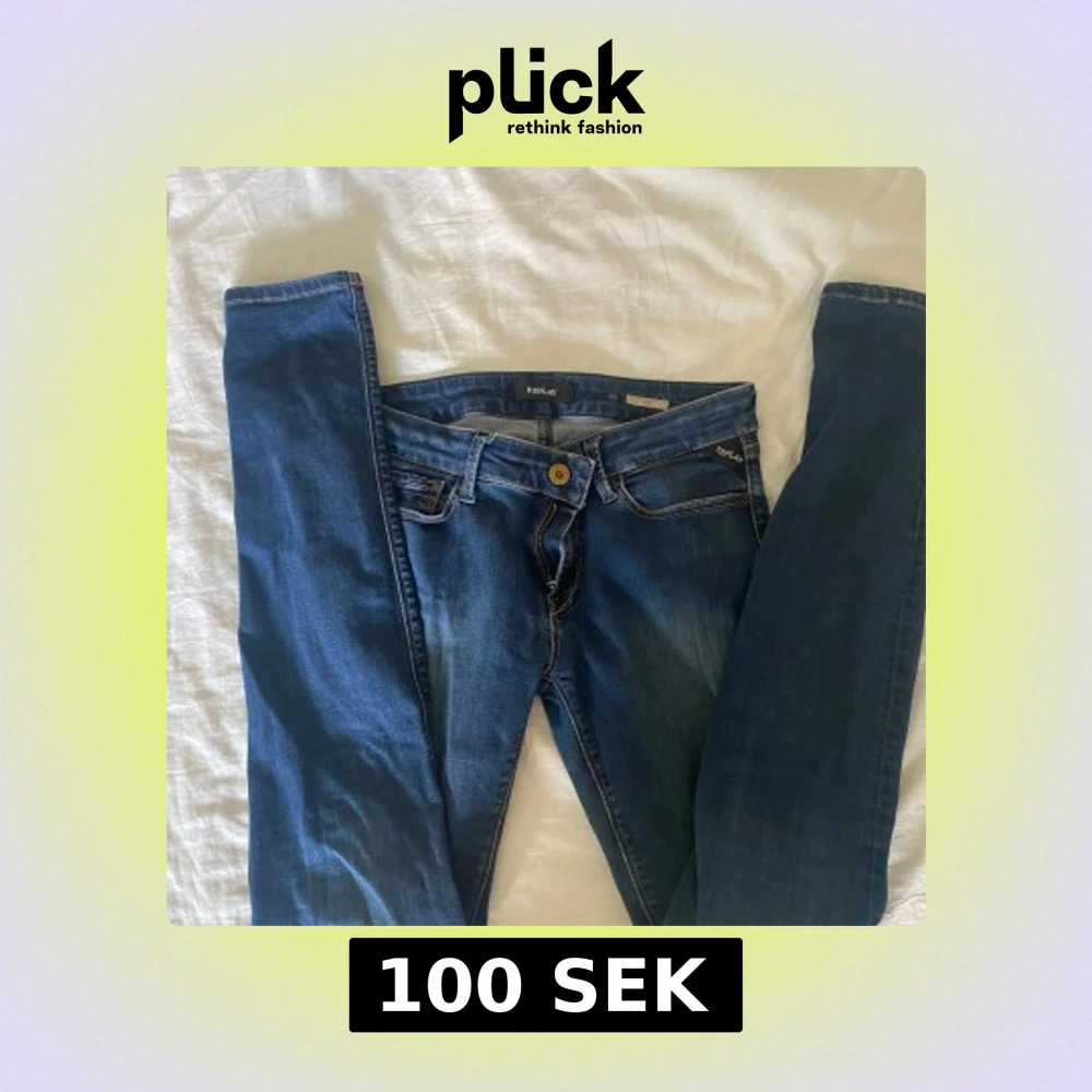 säljer dessa fina jeans från replay i ett bra skick! det är använda runt 2-3 gånger. Lågmidjade