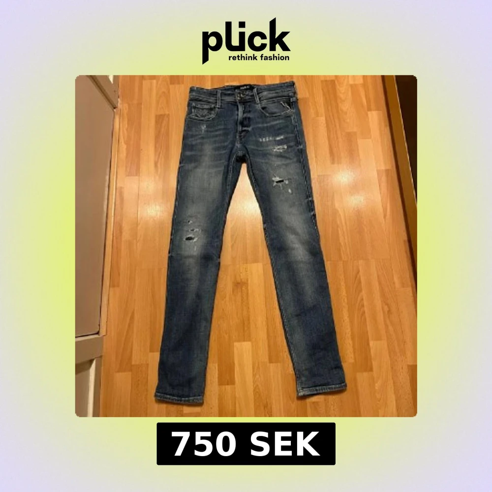 Snygga blå jeansbyxor från Replay i modellen M914Y, tillverkade i hållbar bomull. Byxorna har slitna detaljer framtill, klassisk femficksdesign. Perfekta för en avslappnad och trendig look.