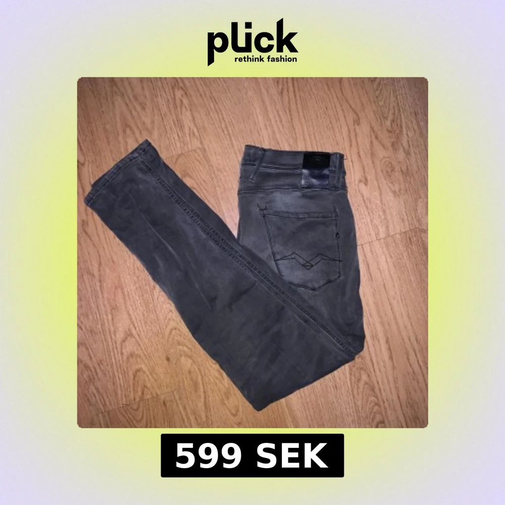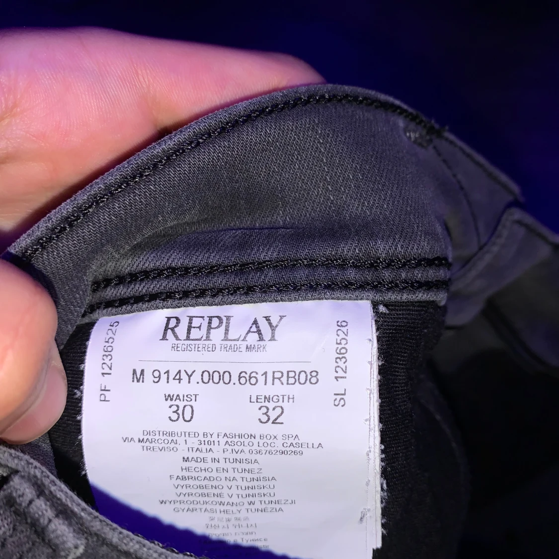Snygga gråa Replay jeans i modell Anbass med smal passform. Jeansen har klassisk femficksdesign, svarta sömmar och Replay-logga på bakfickan. Tillverkade i stretchigt bomullsmaterial för extra komfort.