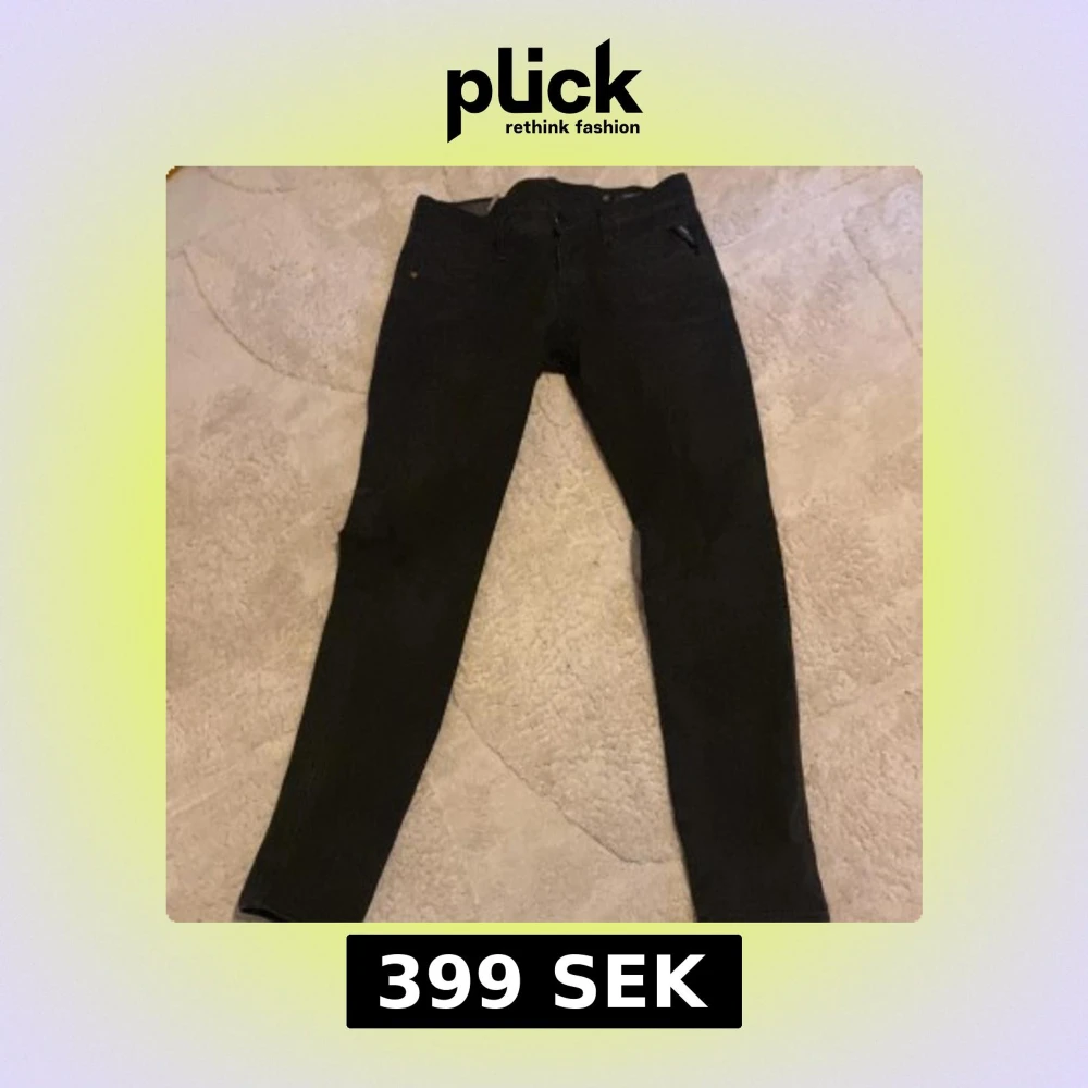 Snygga svarta Replay Anbass jeans i storlek W30 L32. De har en modern slim passform och är perfekta för en stilren look. Klassisk design med dragkedja och knappar.