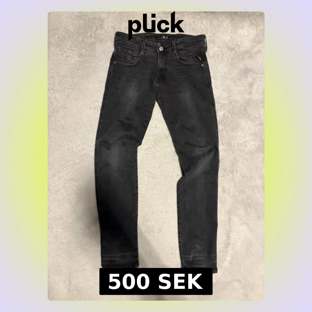 Svarta Replay Anbass jeans med snygg tvättad look och klassiska fem fickor. Jeansen har raka ben och diskreta sömmar på bakfickorna. Materialet är mjukt och stretchigt jeans, perfekt för en chill och stilren vibe.