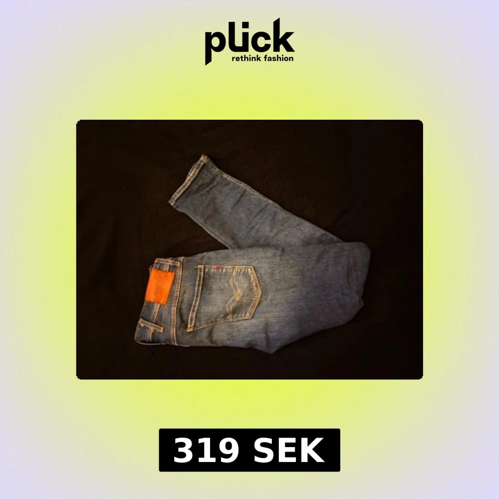 Säljer ett par Replay Anbass jeans i klassisk blå tvätt med snygga slitningar och slim/straight passform. Passar bra för dig runt 180 cm