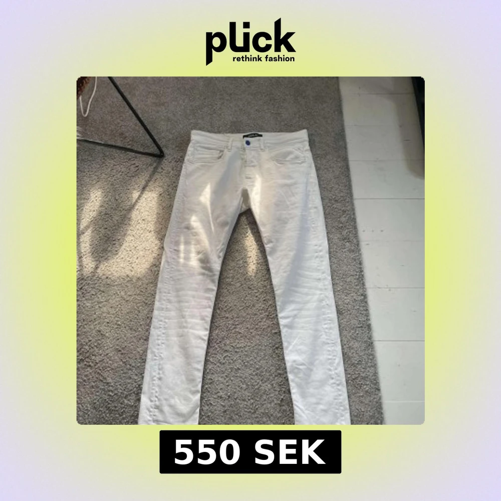 Snygga vita jeans från Replay, modell Willbi med slim fit. Klassisk femficksdesign, blå Replay-patch bak och smal passform. Perfekta för dig som vill ha ett fräscht och stilrent par jeans med modern känsla. Använda en gång, som nya!