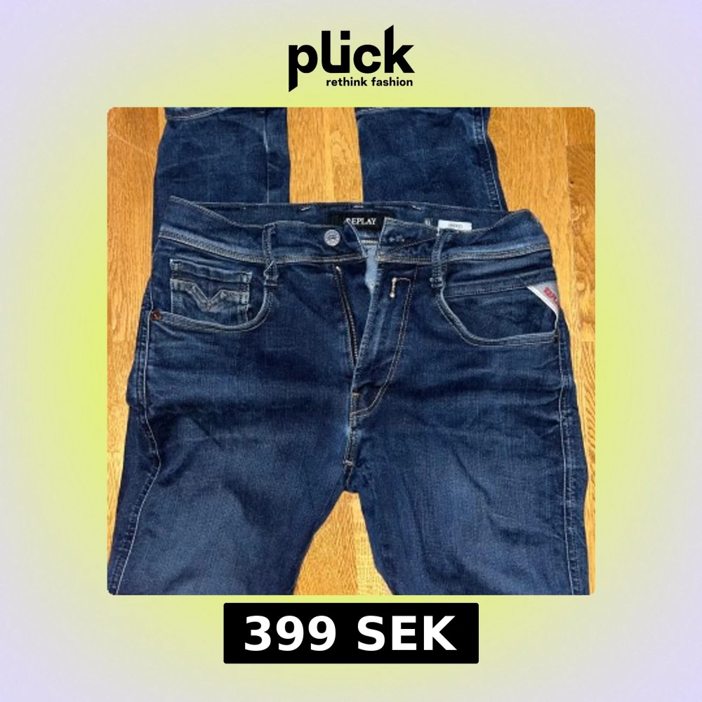 Säljer ett par mörkblå Replay Anbass jeans med klassisk femficksdesign och snygga detaljer. Jeansen har normal passform och dragkedja i gylfen. Perfekta för dig som gillar stilrena och bekväma jeans.