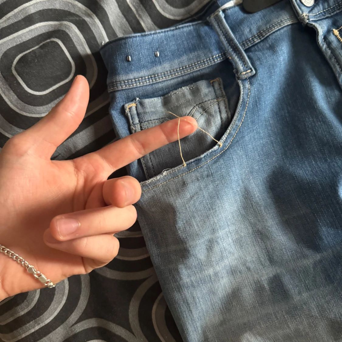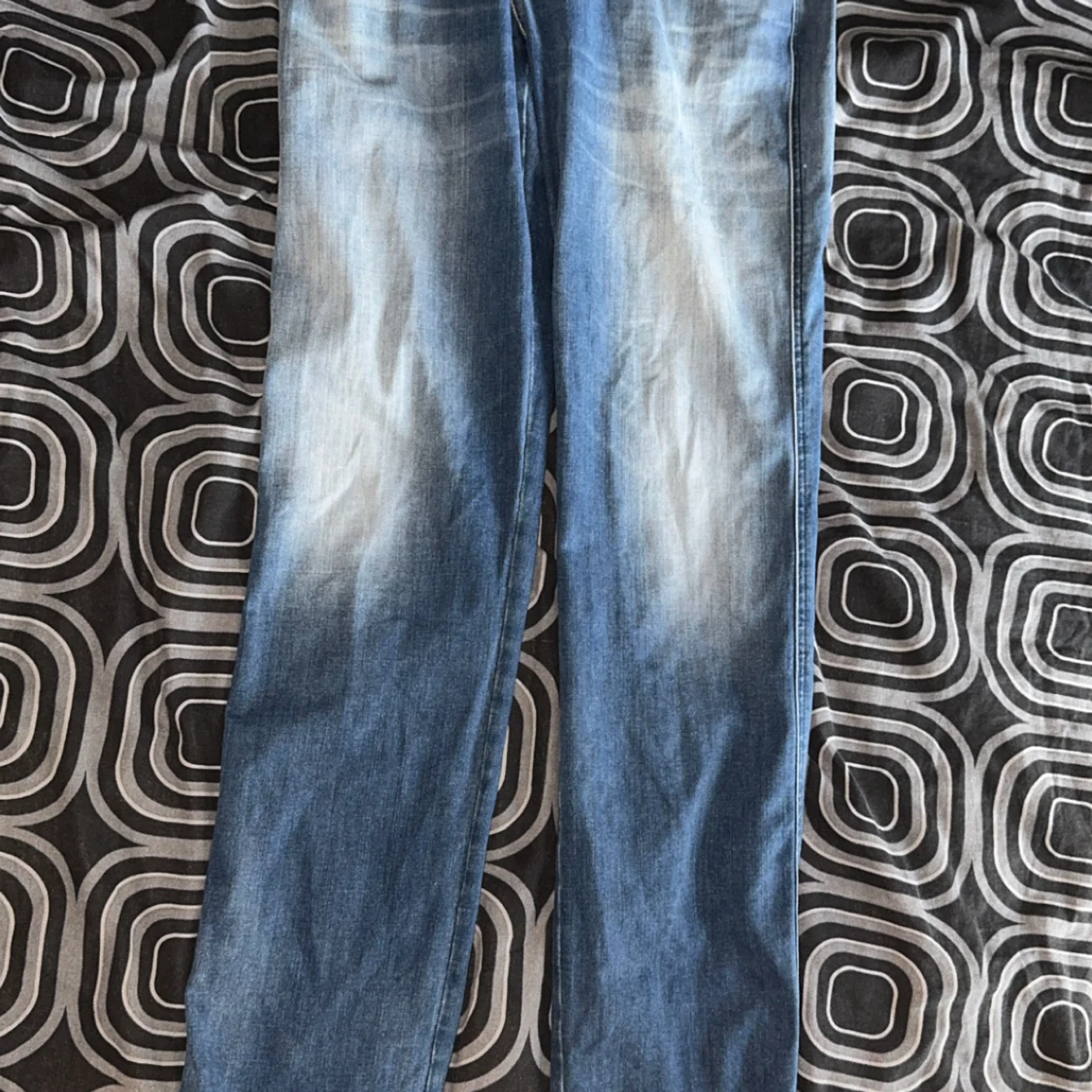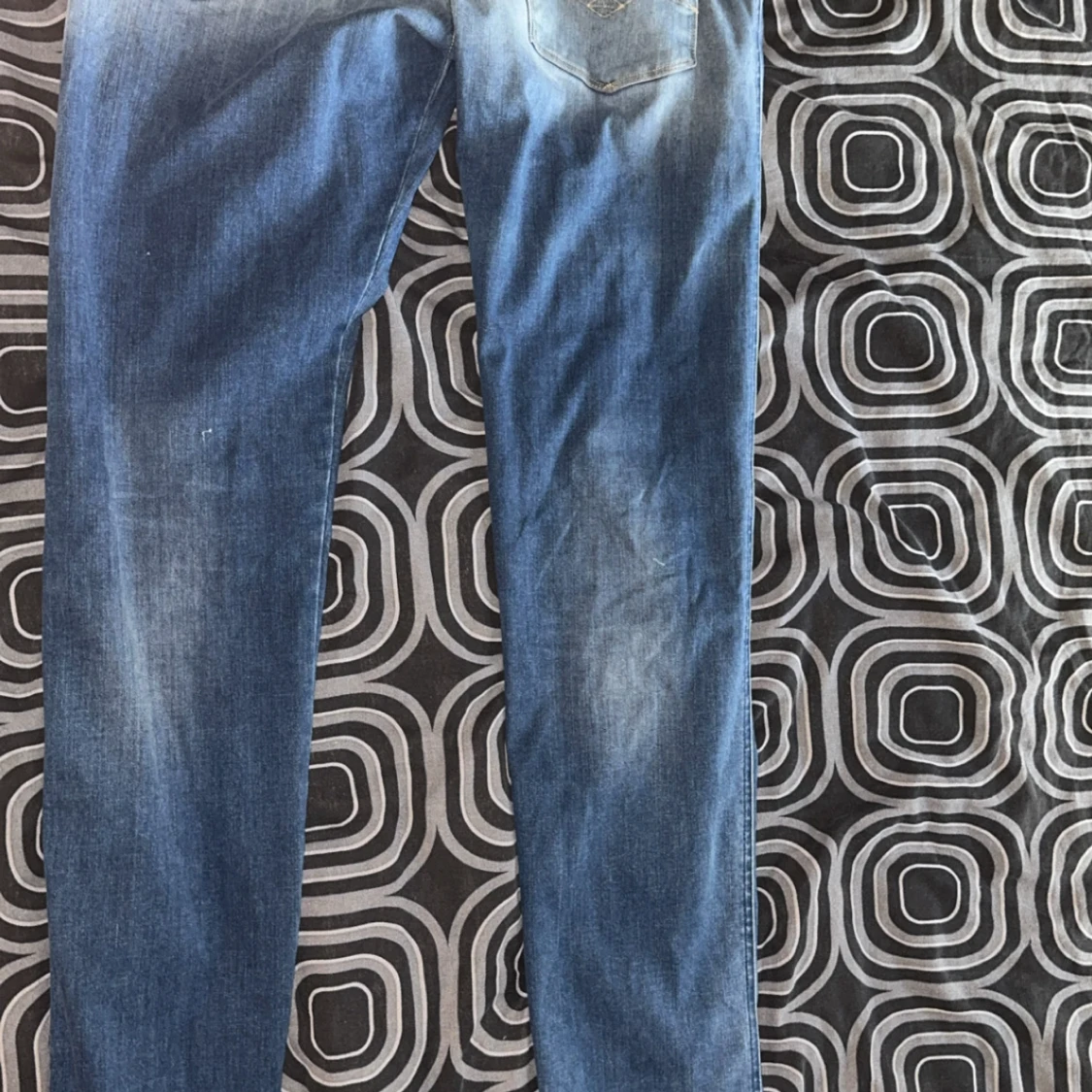 Säljer ett par ljusblå jeansbyxor replay anbass i storlek W32 L36. Ganska långa för mig som är ≈1,86 men sitter bra ändå, en tråd har låstnat som man ser på en av bilderna, hör gärna av er för mer bilder.