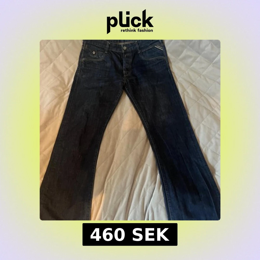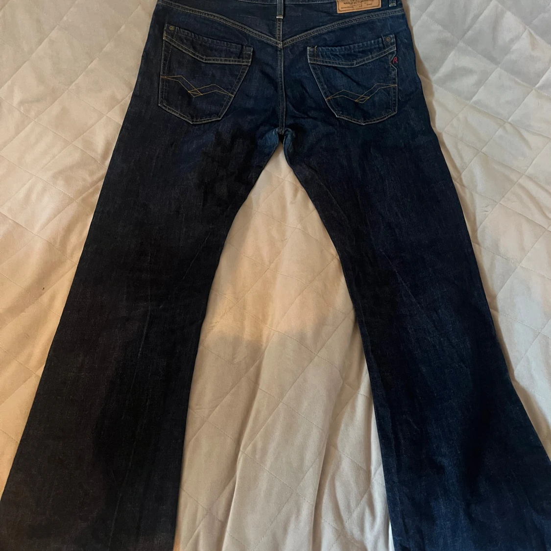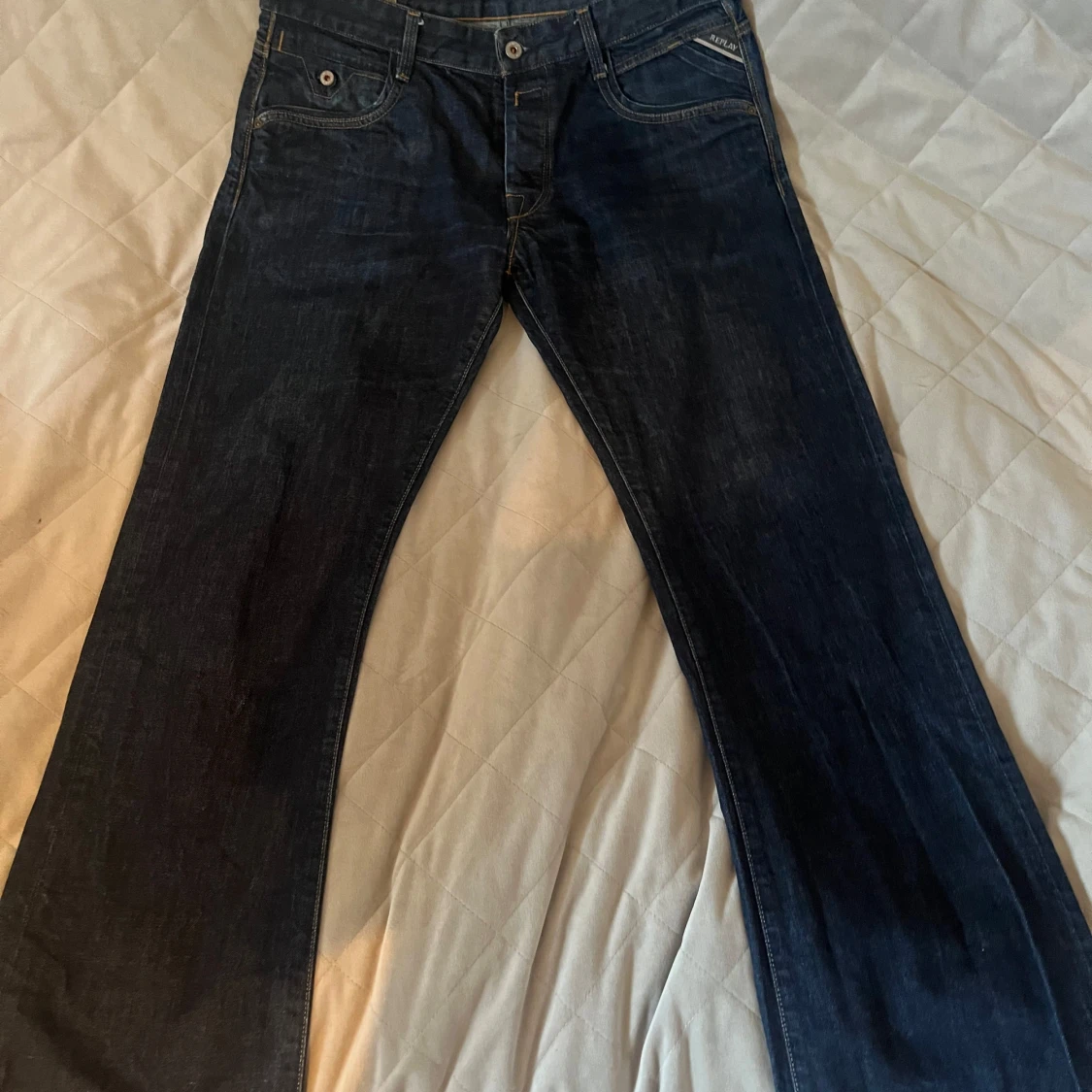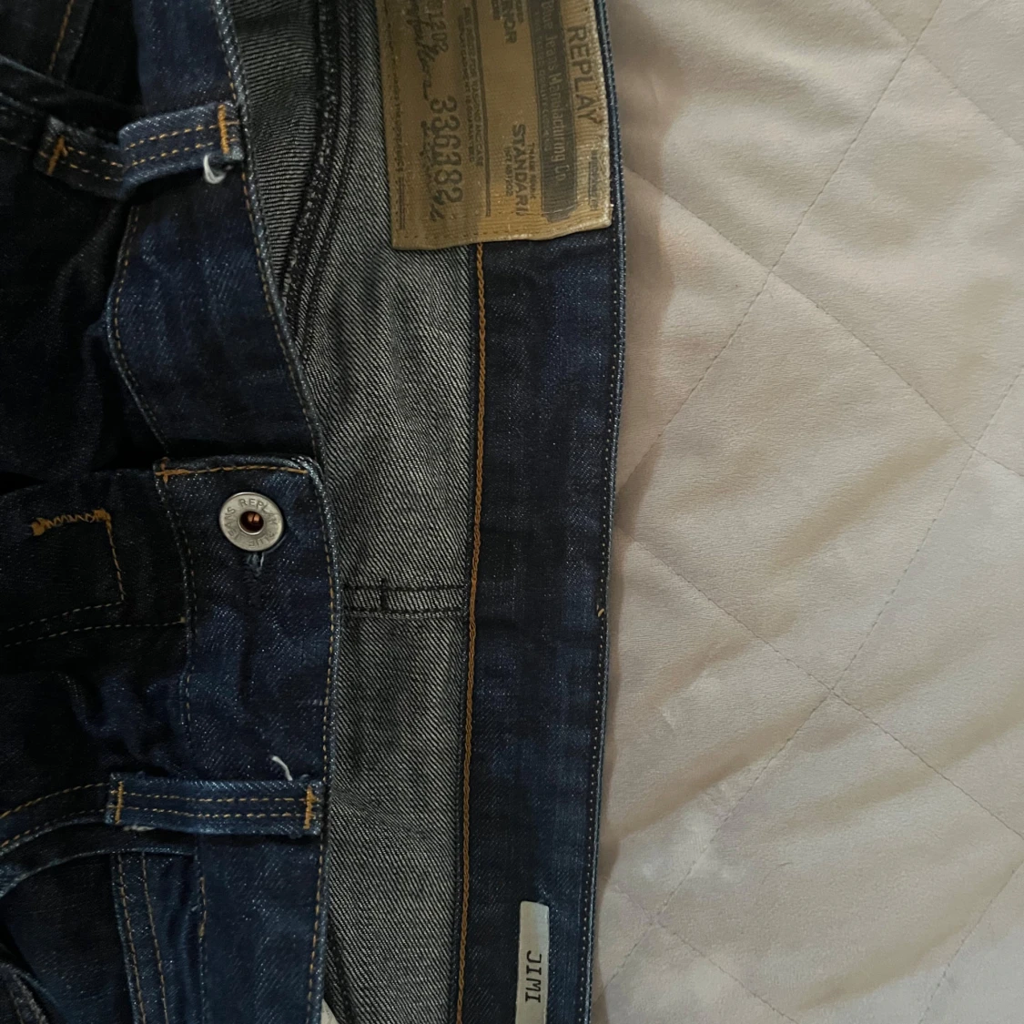 Säljer ett par mörkblå Replay JIM jeans W34/L32. Mörkblåa med cool design.