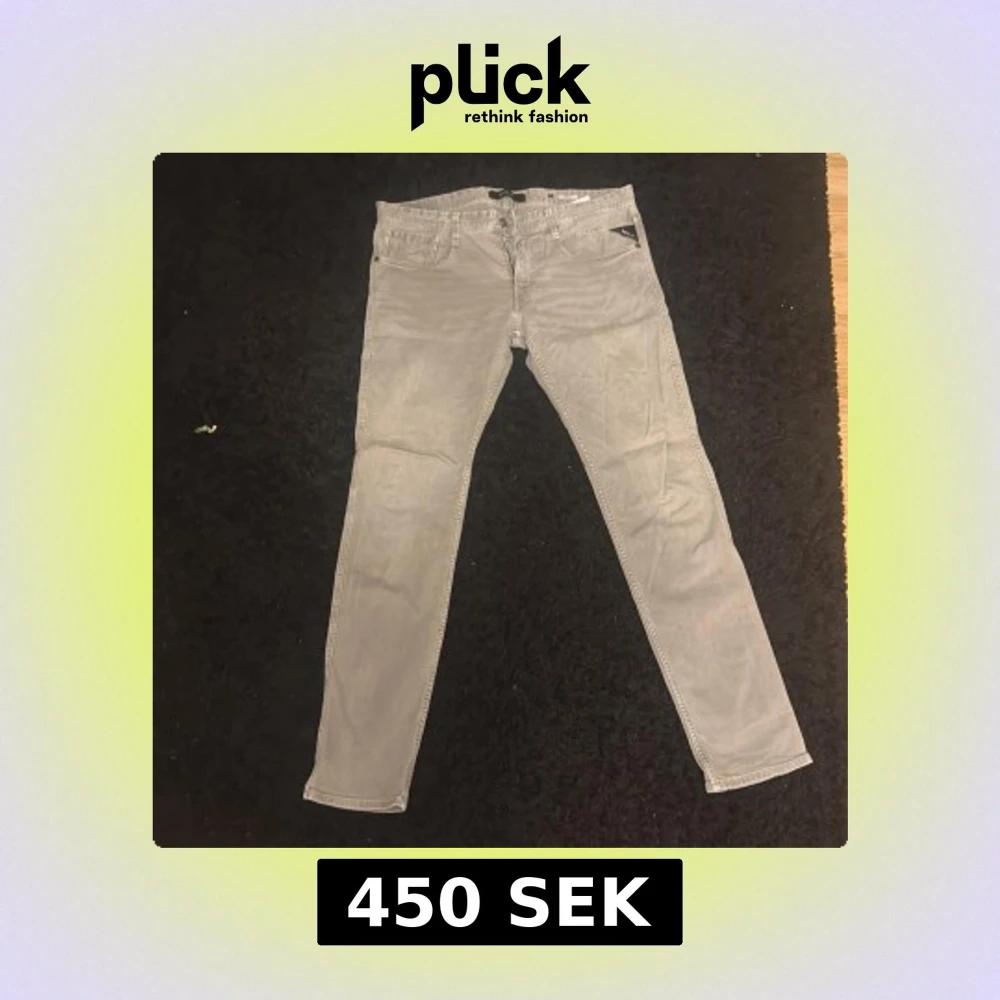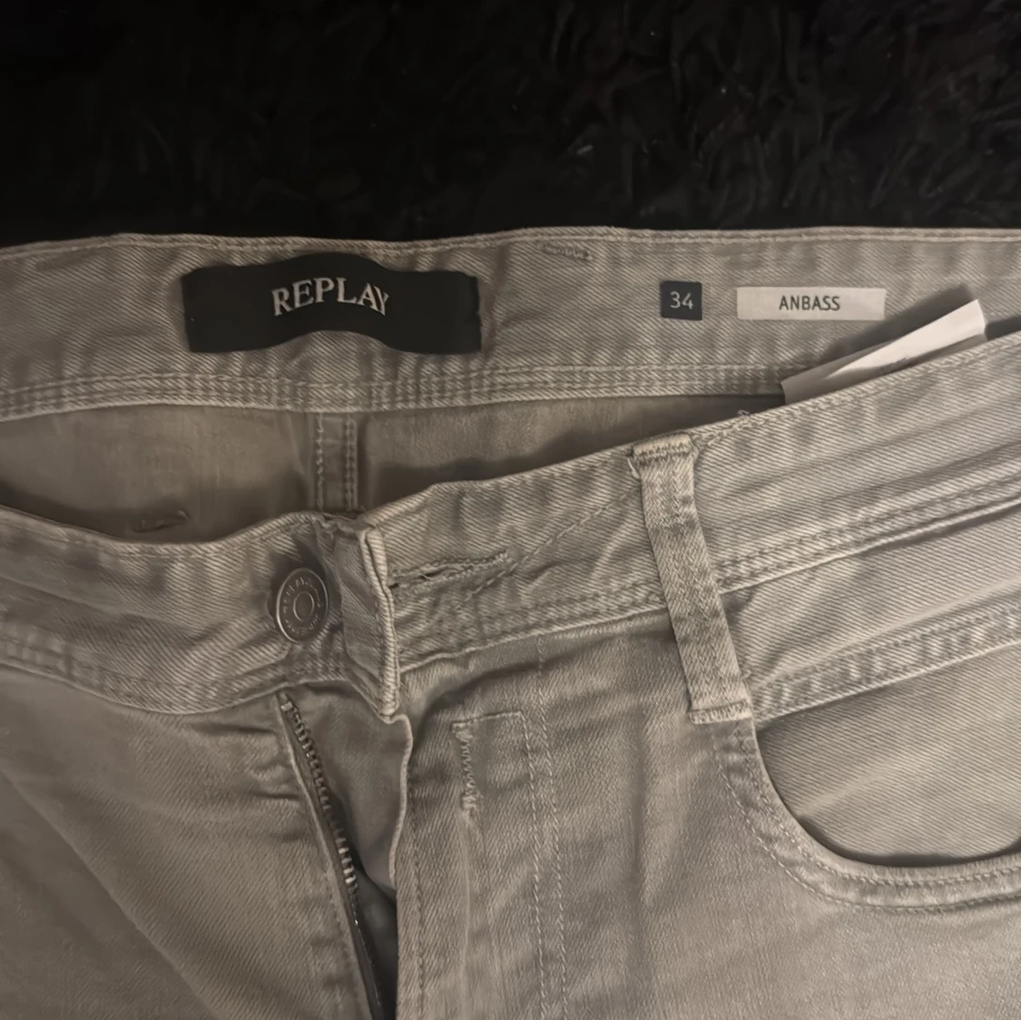 Snygga grå jeans från Replay i modellen Anbass. De har en slim passform och är tillverkade i ett bekvämt jeansmaterial. Perfekta för en stilren look med klassiska femfickor och knappgylf.