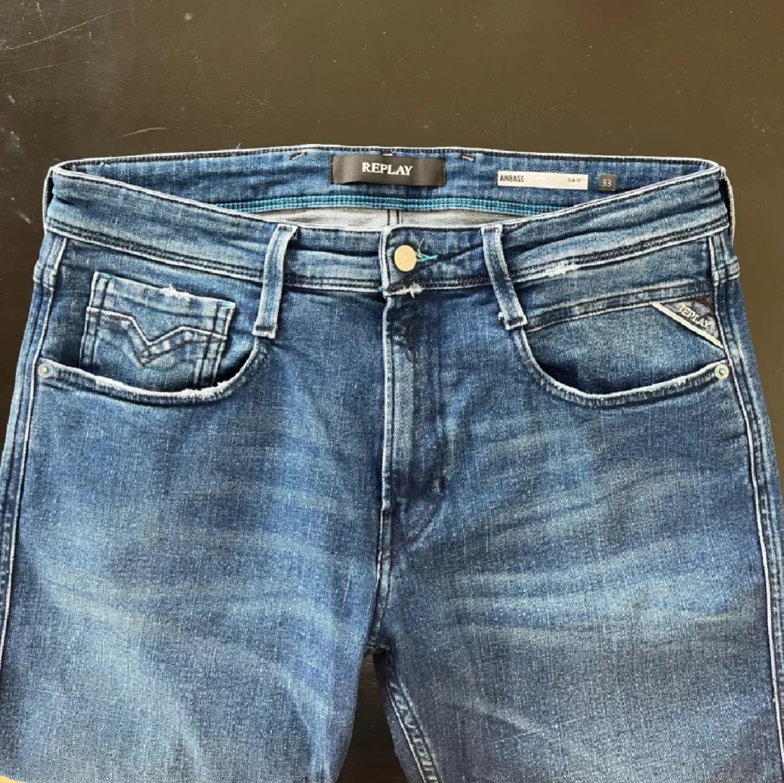 Säljer ett par riktigt feta slimfit Replay Anbass i waist 33 och längd 32. Skriv vid minsta fråga!🙌