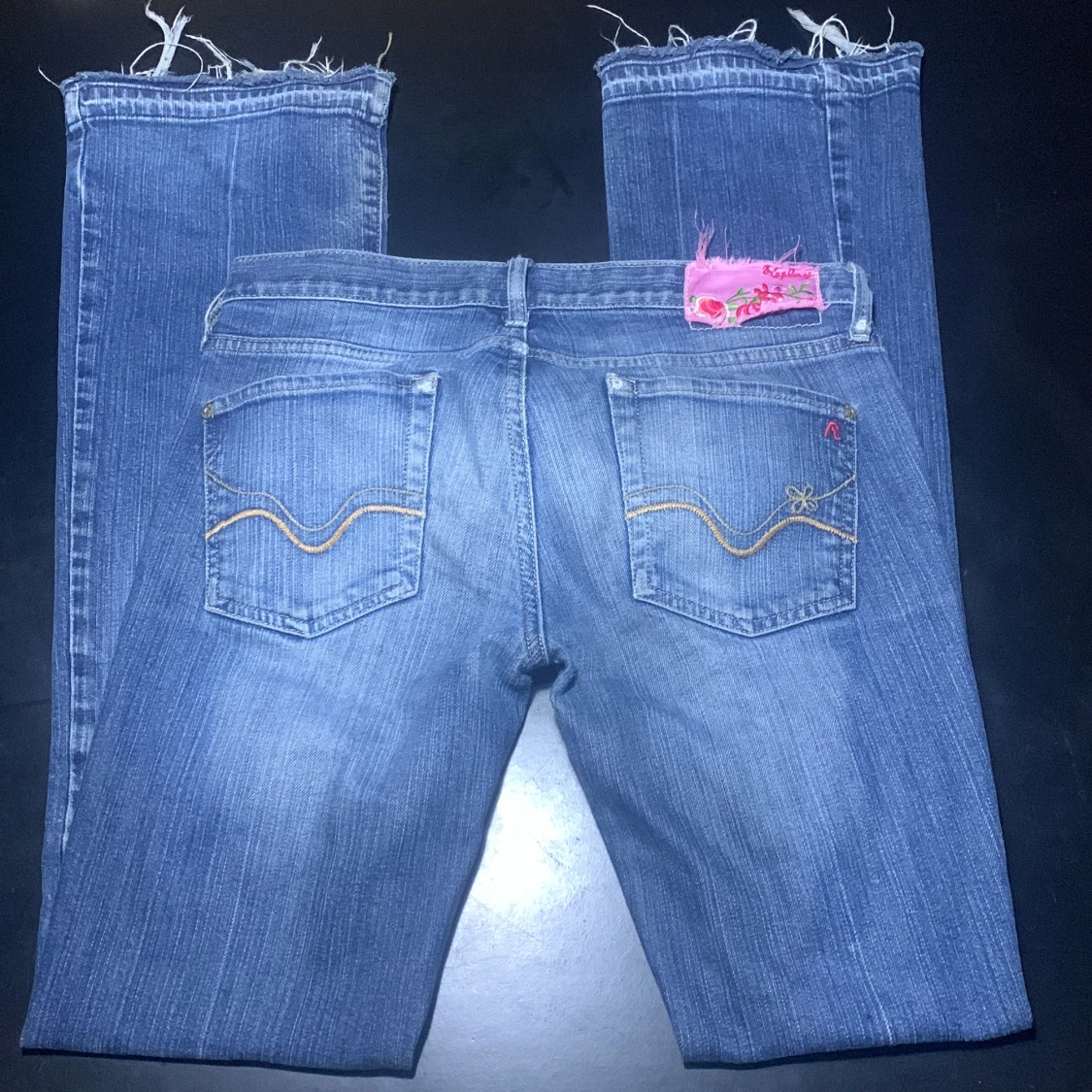 Lågmidjade, utsvänga replay jeans. Midja tvärsöver: ca 37 cm. Midja runt om: ca 74 cm. Innerbenslängd: ca 80 cm 💗💗