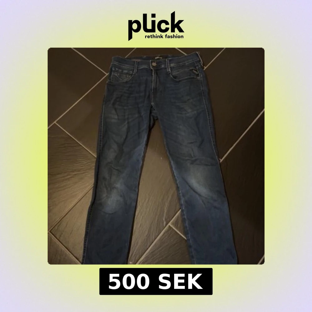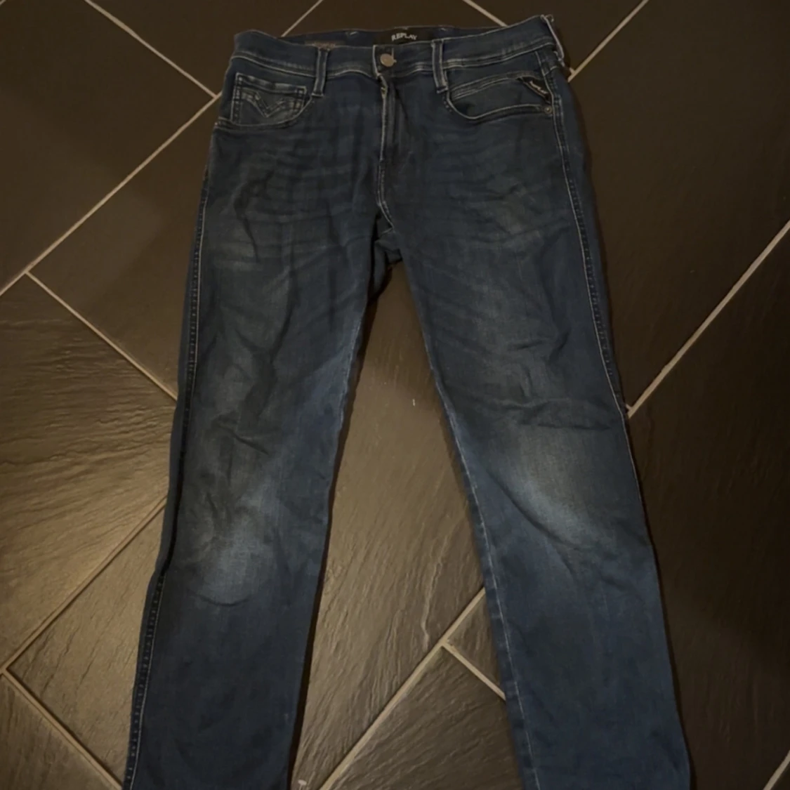 Säljer ett par mörkblå Replay Hyperflex jeans i stretchigt material. Klassisk femficksmodell med smal passform och snygga detaljer vid fickorna. Ändast använda fåtal gånger. MVH/Felix