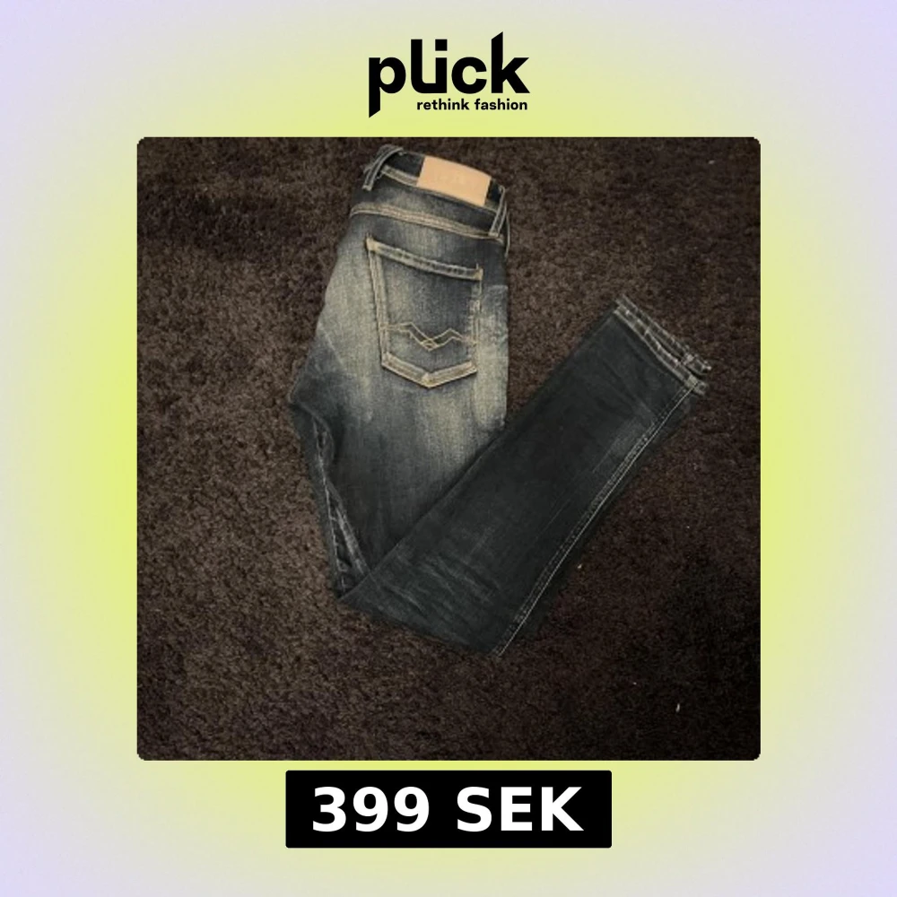 Tvär feta jeans från Replay i mörkblå med slitningar vita detaljer. Jeansen har normal passform, ganska straight och är av replays Hyperflex som gör de enormt mycket skönare. Storlek 30/32, passar mig perfekt som har gått från 180-183. Jeansen är i väldigt bra skick och är använda sparsamt.