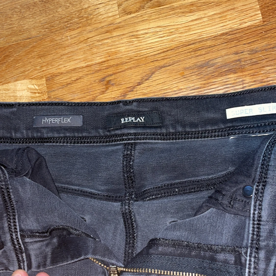 Svarta Replay Hyperflex jeans med super slim passform. Jeansen har klassisk femficksdesign, dragkedjegylf och diskret Replay-logga vid fickan. Stretchigt material för extra komfort och snygg siluett. Perfekta för dig som gillar en tajt look.