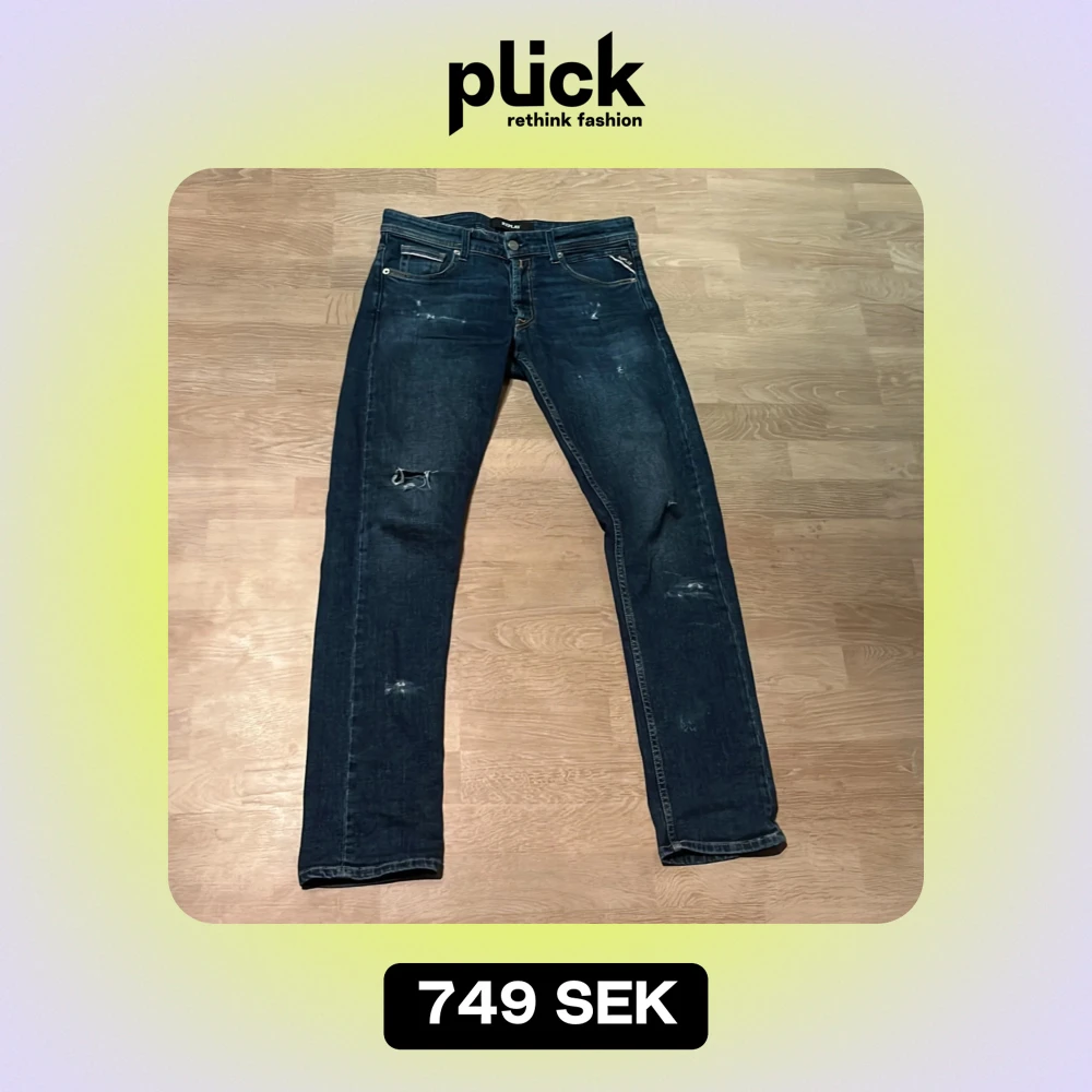 Säljer ett par snygga mörkblå jeans från Replay i bra skick. De har slitna detaljer för en cool look. Perfekta för både vardag och fest! 🕺
