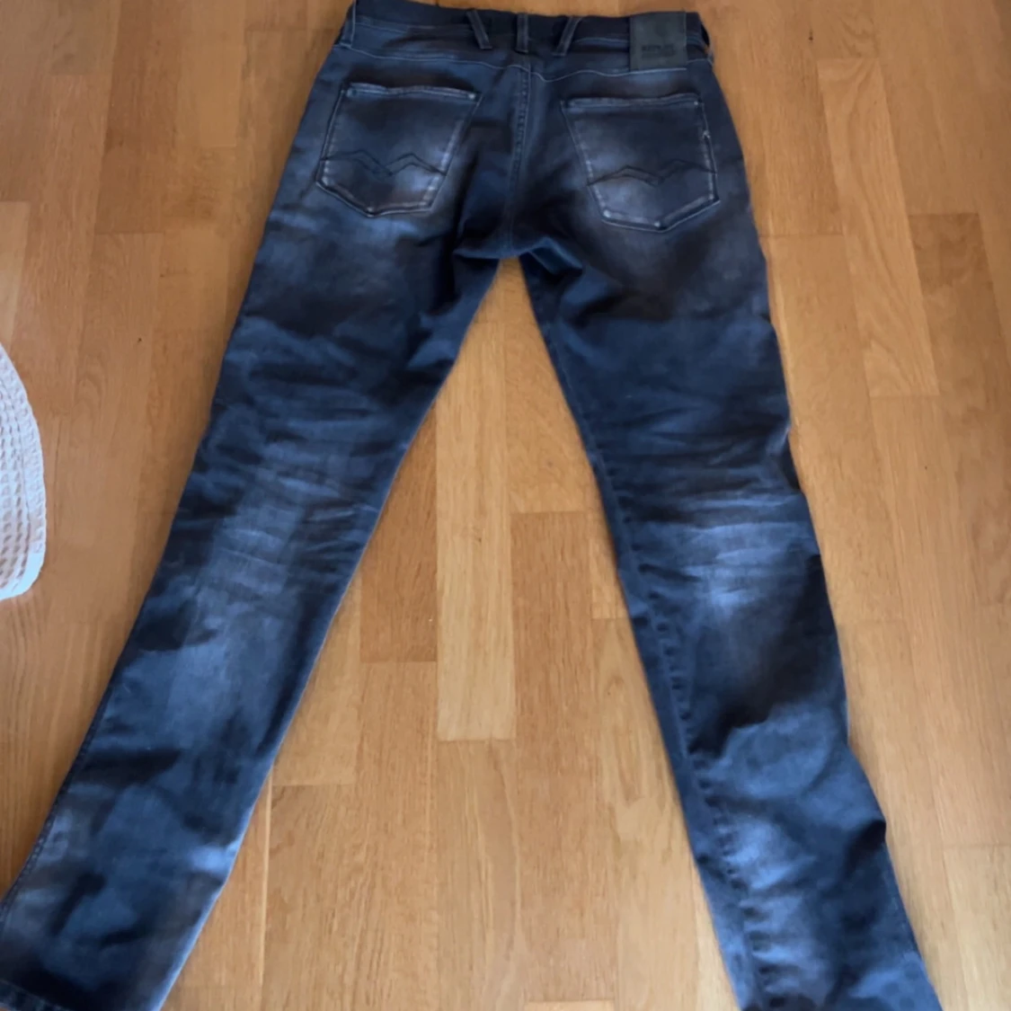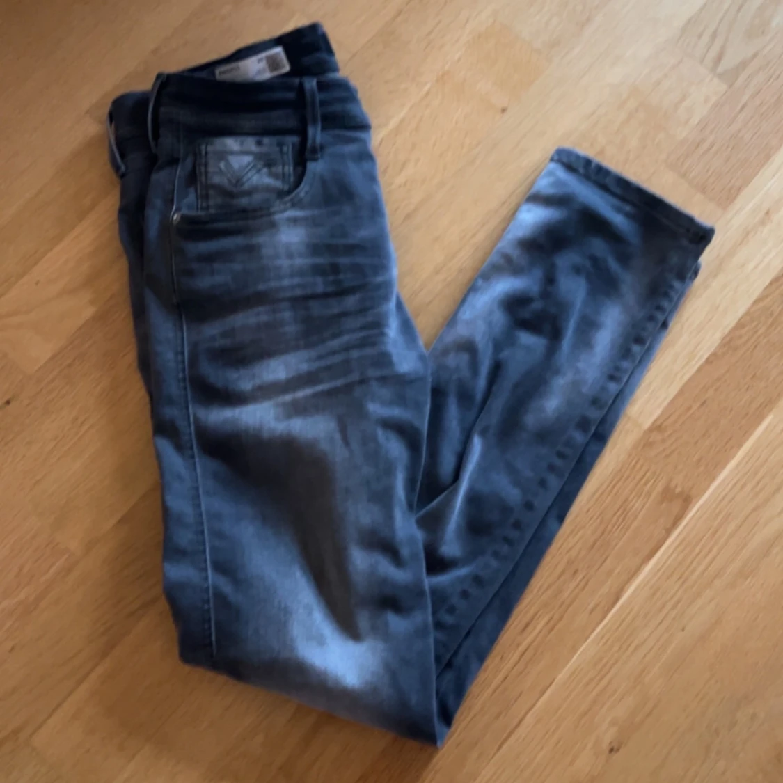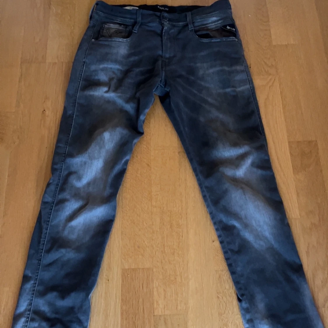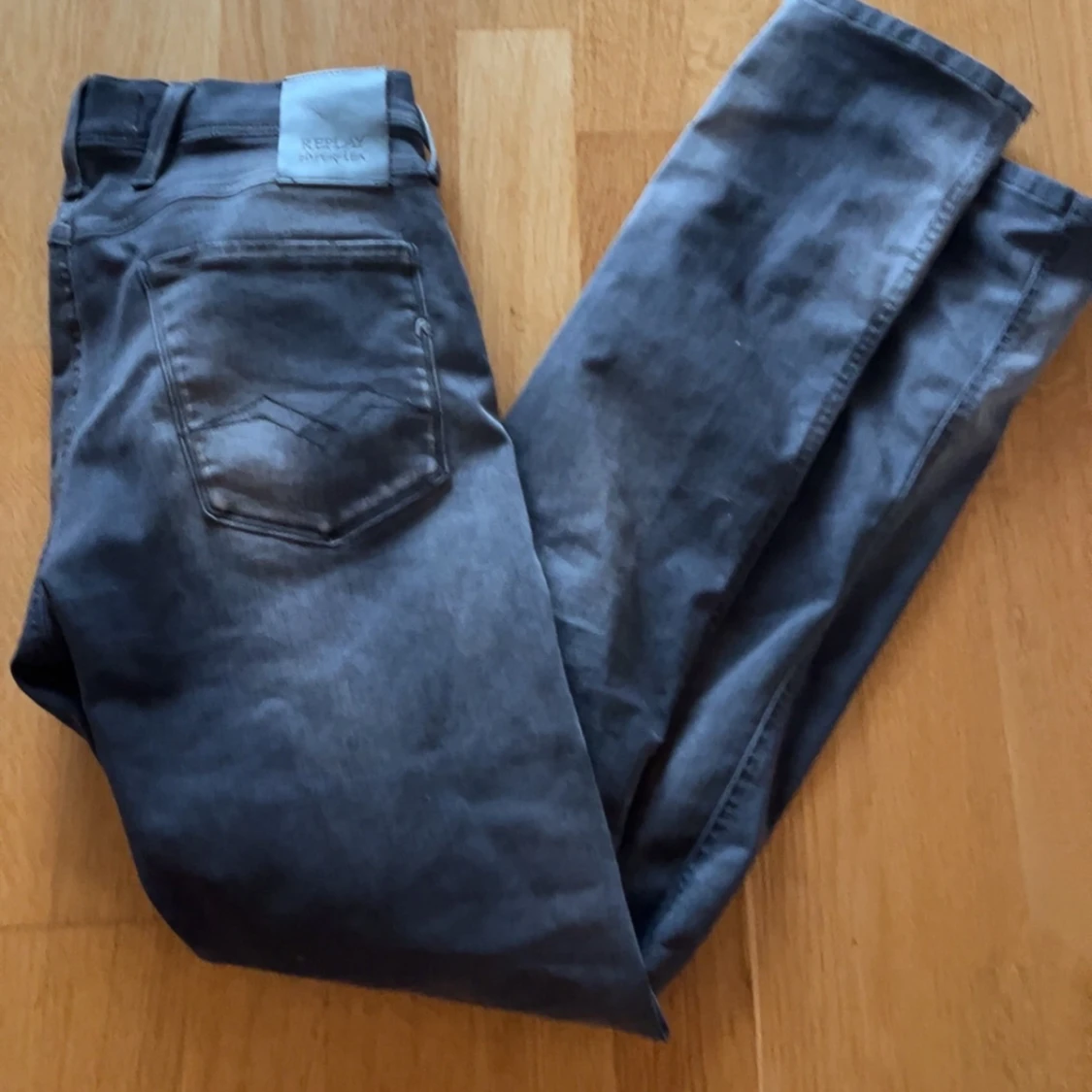 Säljer ett par grå jeans från Replay med klassisk femficksdesign och raka ben. Byxorna har en snygg tvättad look. Perfekta för dig som gillar en stilren och avslappnad vibe. Säljer då jag knappt använt dem. Nypris strax under 2000