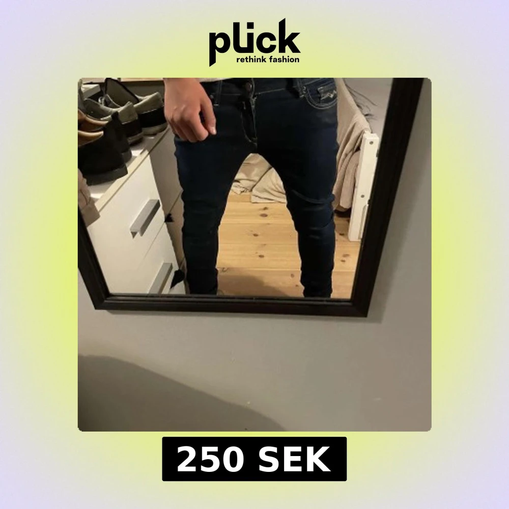 Säljer ett par mörkblå skinny jeans från Replay med klassiska fem fickor och snygga kontrastsömmar på bakfickorna. Jeansen har låg midja och är tillverkade i stretchigt denim för en tight passform. Perfekta för dig som gillar en smal siluett. Storlek: W29 L30.