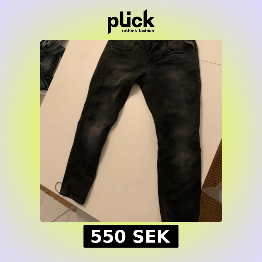 Snygga svarta Replay Anbass jeans med en modern passform. De har en klassisk femficksdesign och subtila slitningar för en trendig look. Perfekta för en stilren vardagsoutfit. Midje storleken är 30 men sitter mer som 29
