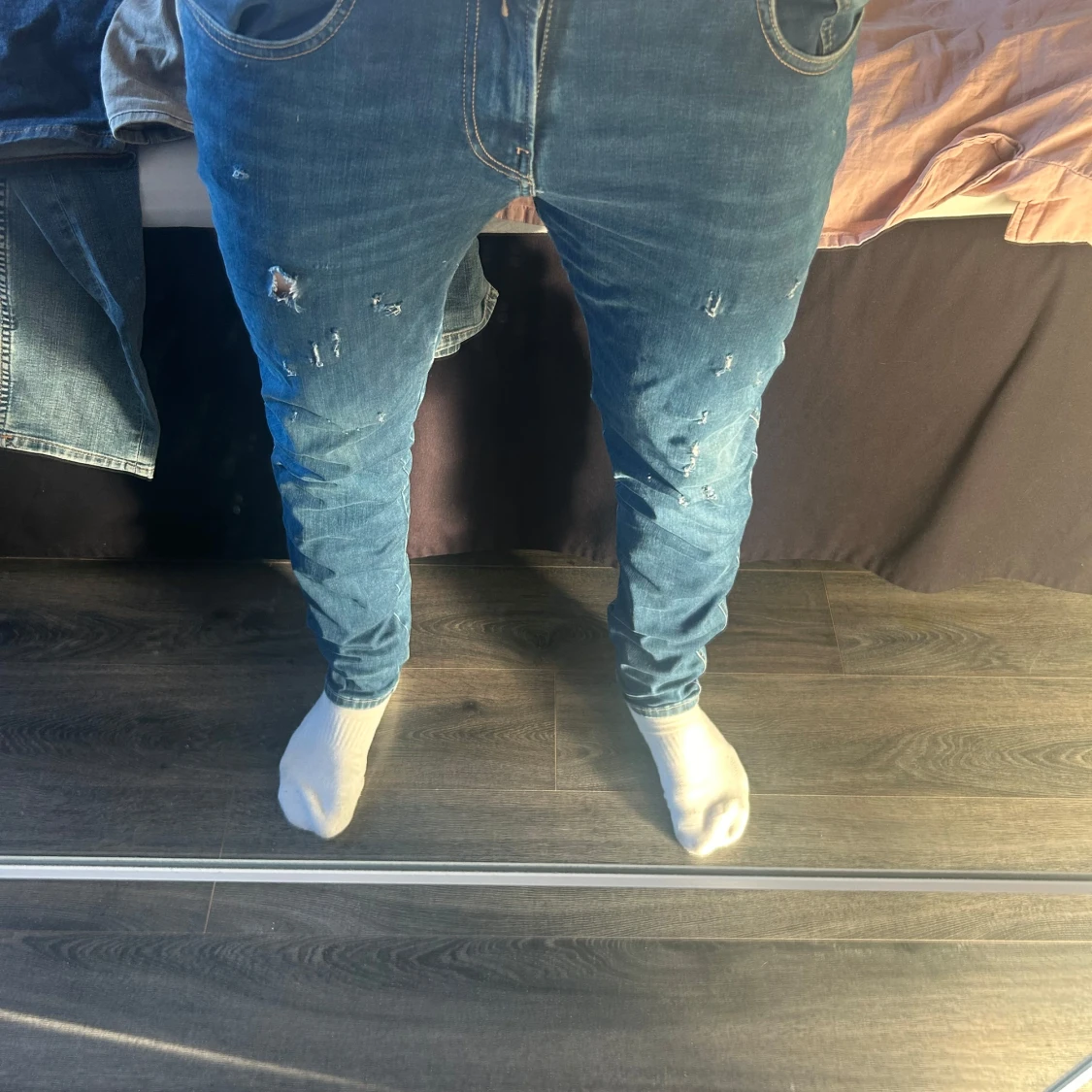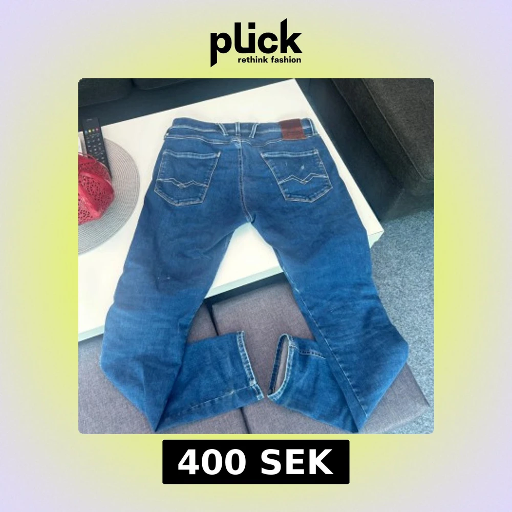 Snygga blå jeansbyxor med lite slitningar från Replay, modell Anbass. Perfekta för en avslappnad stil. Väldigt bra skick, skriv för mer info!