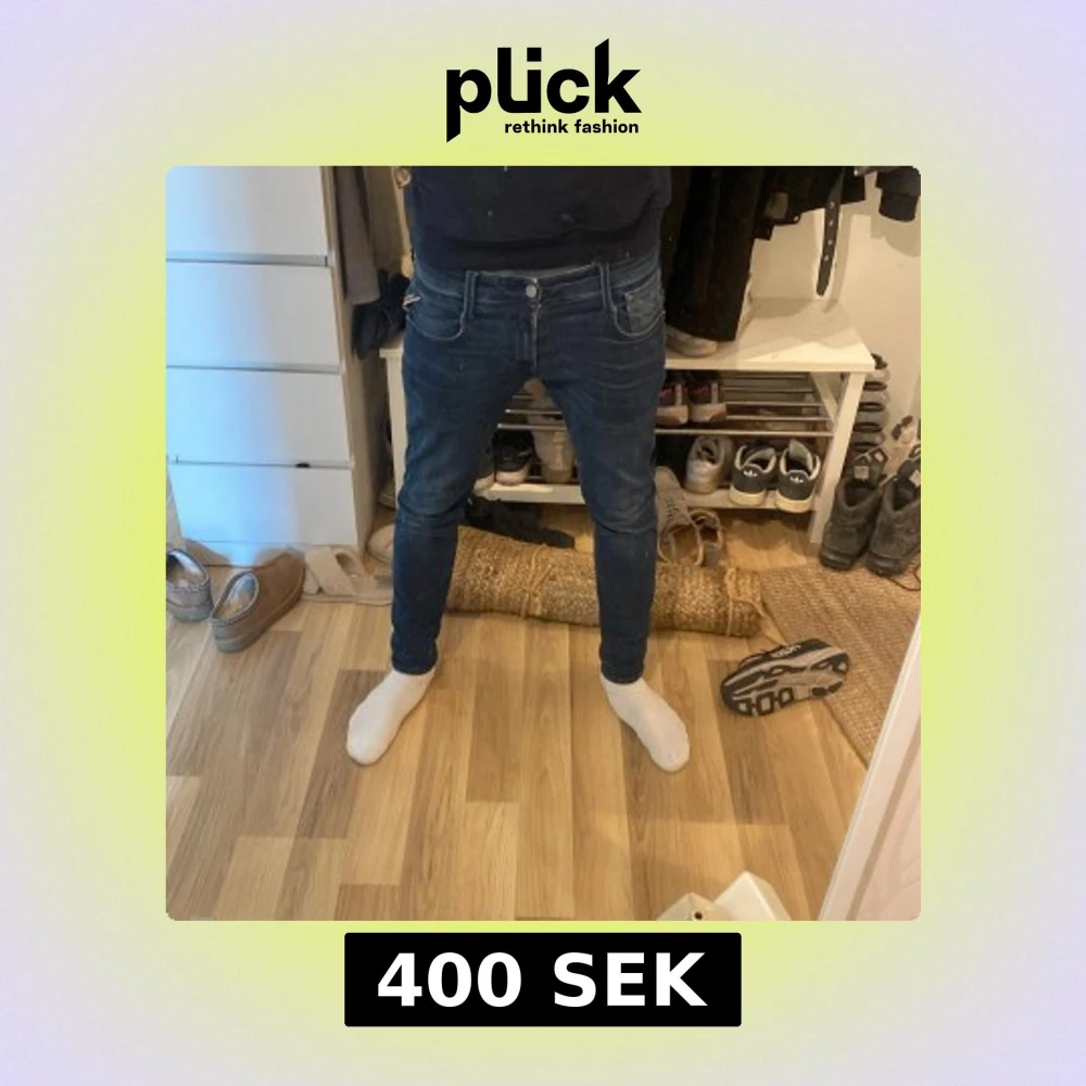 Snygga blå jeans från Replay med klassisk femficksdesign och en bekväm passform. Den har två små slitningar syns på bild 4. Jag är 180 och väger 67 kg. Skriv vid fler funderingar!