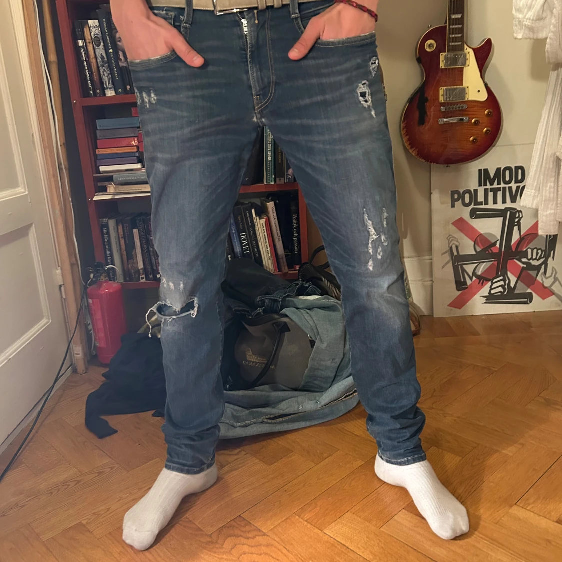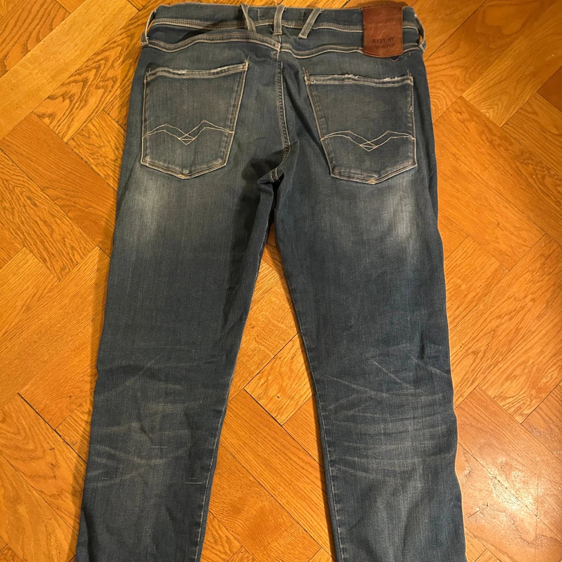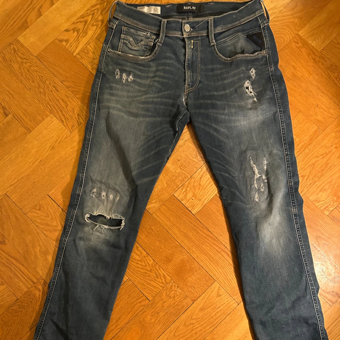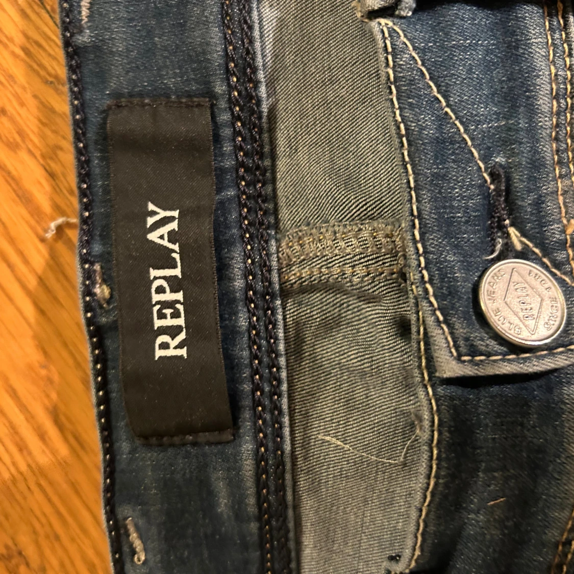 Säljer ett par blå hyperflex jeans från Replay med slitningar och ett lappat hål på benet vilken såklart sänker priset. Klassisk femficksmodell med raka ben och snygga detaljer på bakfickorna. Jeansen har slim passform och är tillverkade i mjukt denimtyg. De är väldigt bekväma och stretchiga men samtidigt stilrena