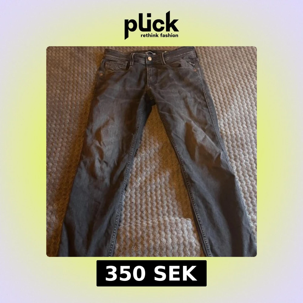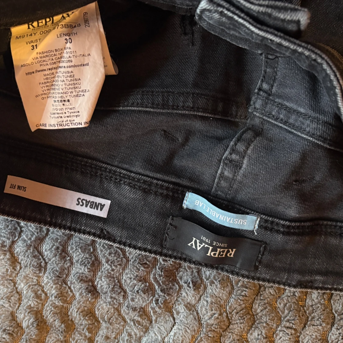 Svarta Replay Anbass jeans med slim fit och klassisk femficksdesign. Jeansen har snygga detaljer på bakfickorna och är tillverkade i ett mjukt jeansmaterial. Passformen är smal och midjan är normal. Perfekta för dig som gillar stilrena och moderna jeans.