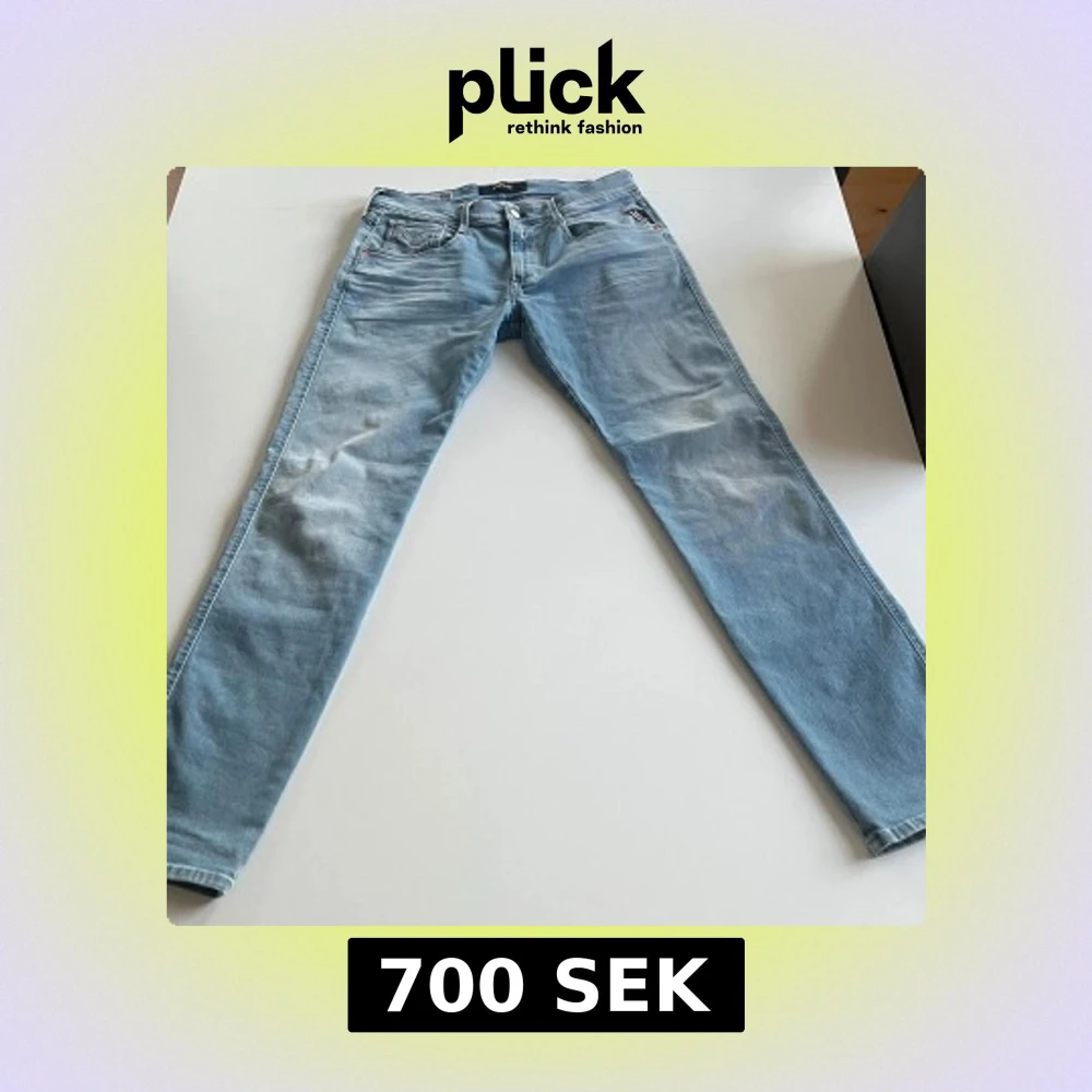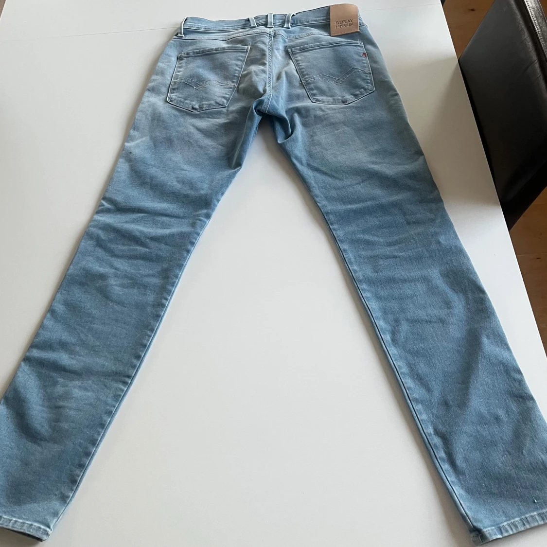 Säljer ett par ljusblå Replay Hyperflex jeans med klassisk femficksdesign och normal passform. Jeansen har dragkedja och knapp framtill. Helt nya utan prislapp. Perfekta för dig som gillar stretchiga jeans!