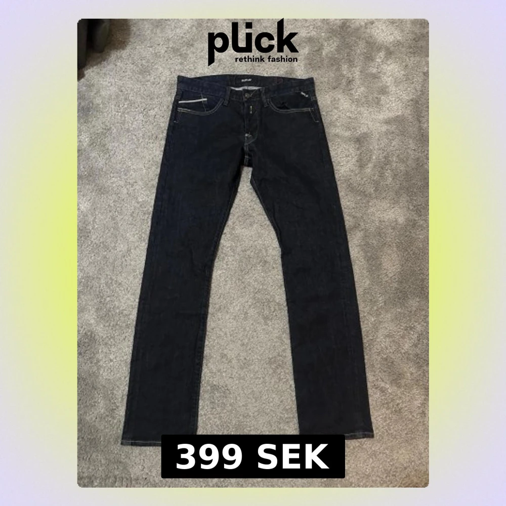 Snygga mörkblå jeans från Replay med klassisk femficksdesign och kontrastsömmar. Modellen har raka ben och normal passform, med Replay-logga på fickan och läderpatch bak i midjan. Perfekt för dig som gillar stilrena och tidlösa jeans. Hör av er vid minsta lilla fundering eller andra frågor.