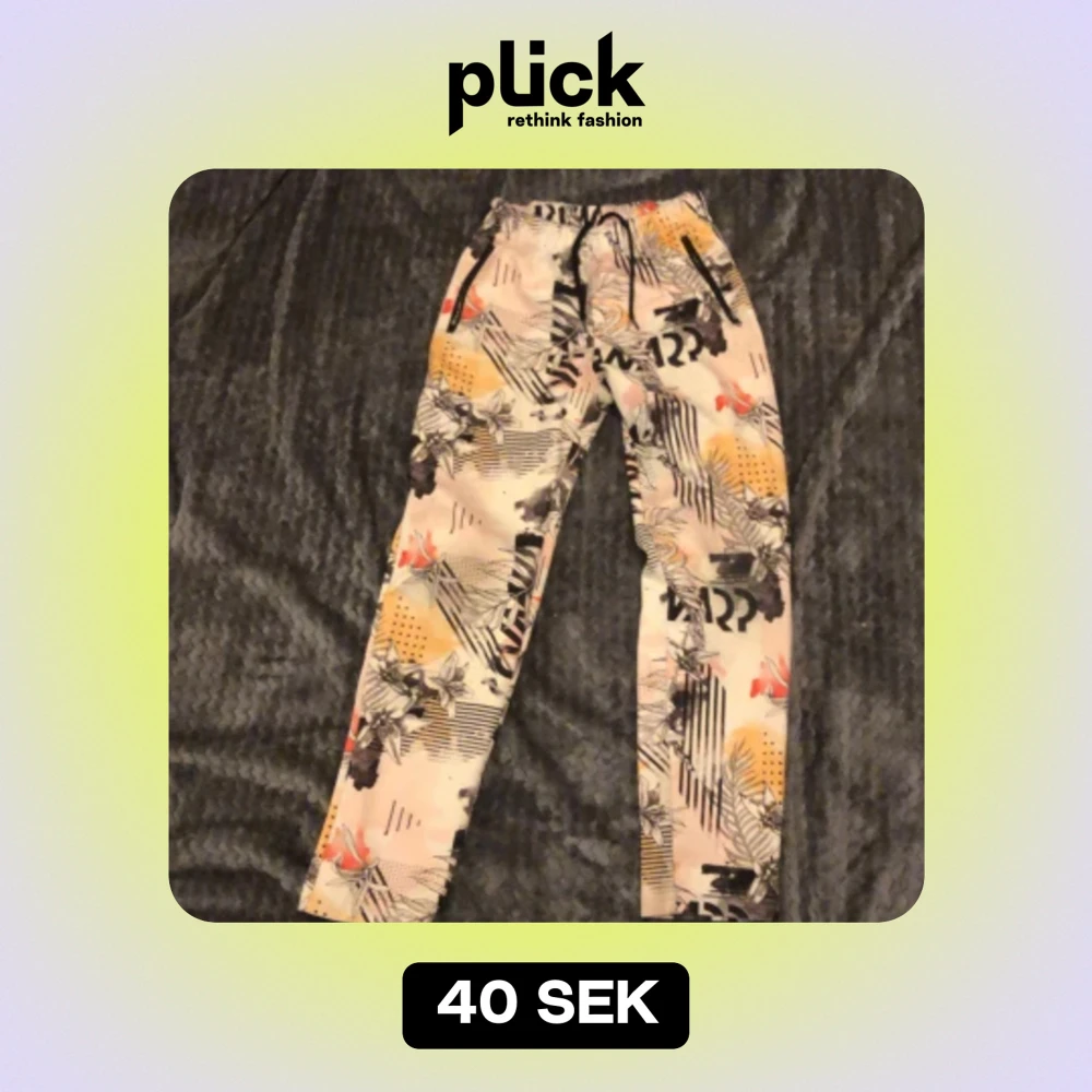 Byxor med rött och gult mönster och svarta detaljer