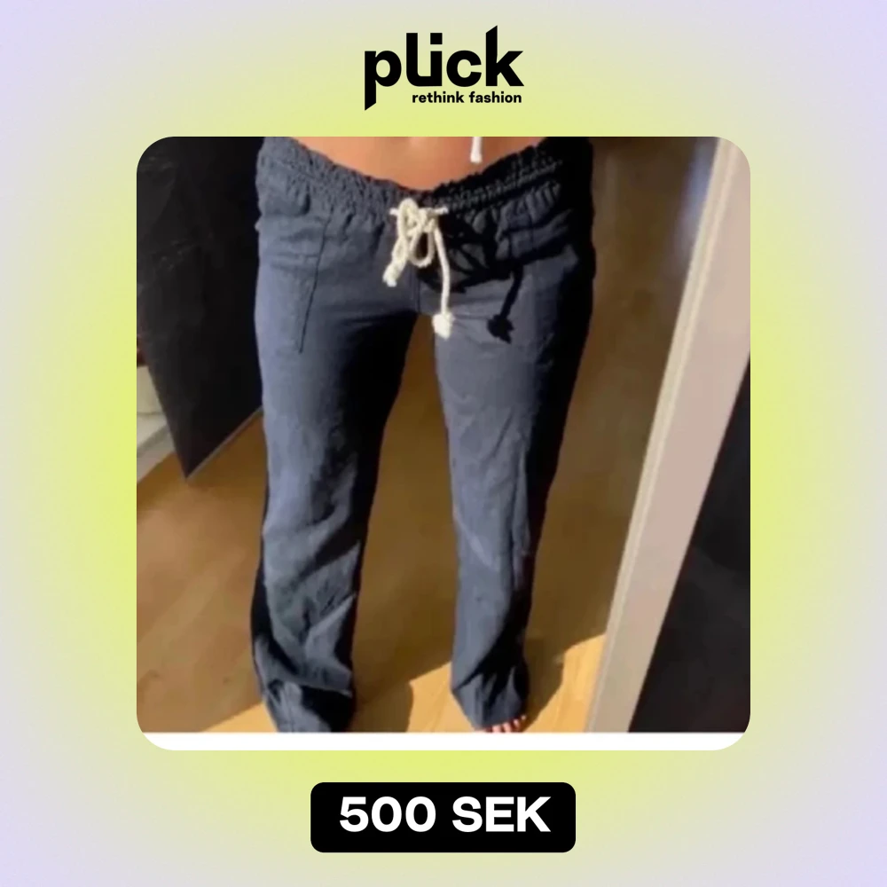 Roxy linnebyxor - MörkblÄa linnebyxor med breda ben och vit snörning i midjan. Byxorna har en loose passform och raka, rÄa benslut för en avslappnad vibe. Perfekta för chill dagar eller nÀr du vill vara bekvÀm men ÀndÄ se cool ut. Endast nÄgra defekter nertill byxan (se bild)