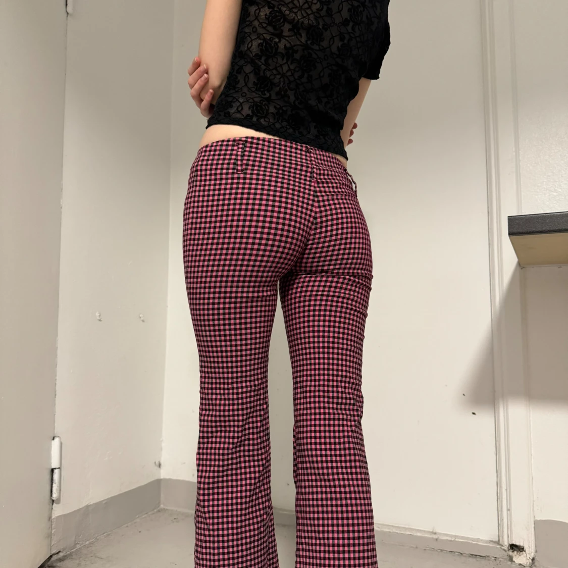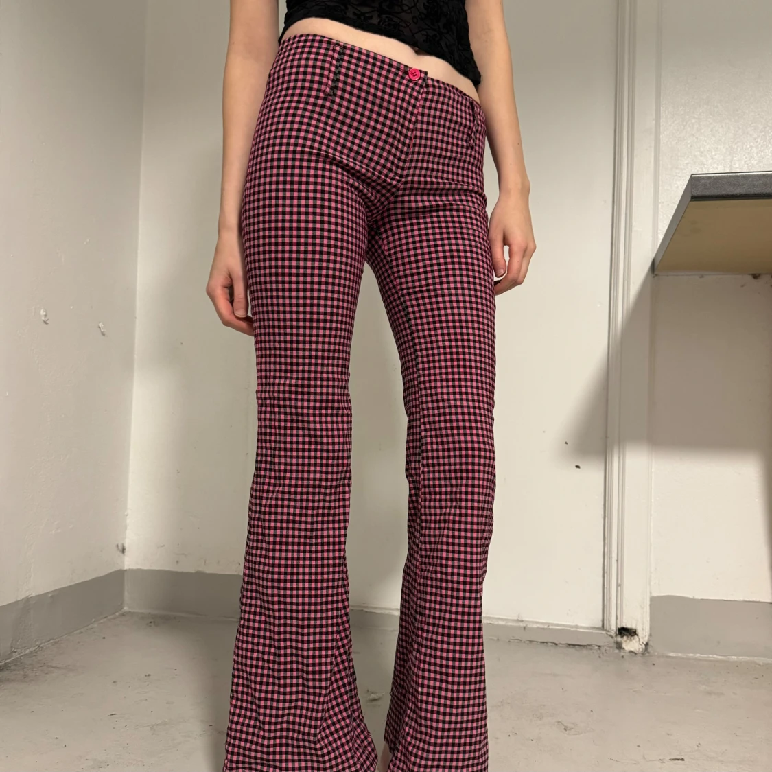 Coola lågmidjade bootcutbyxor i lite strechigt material. Jag är 172cm💓🖤